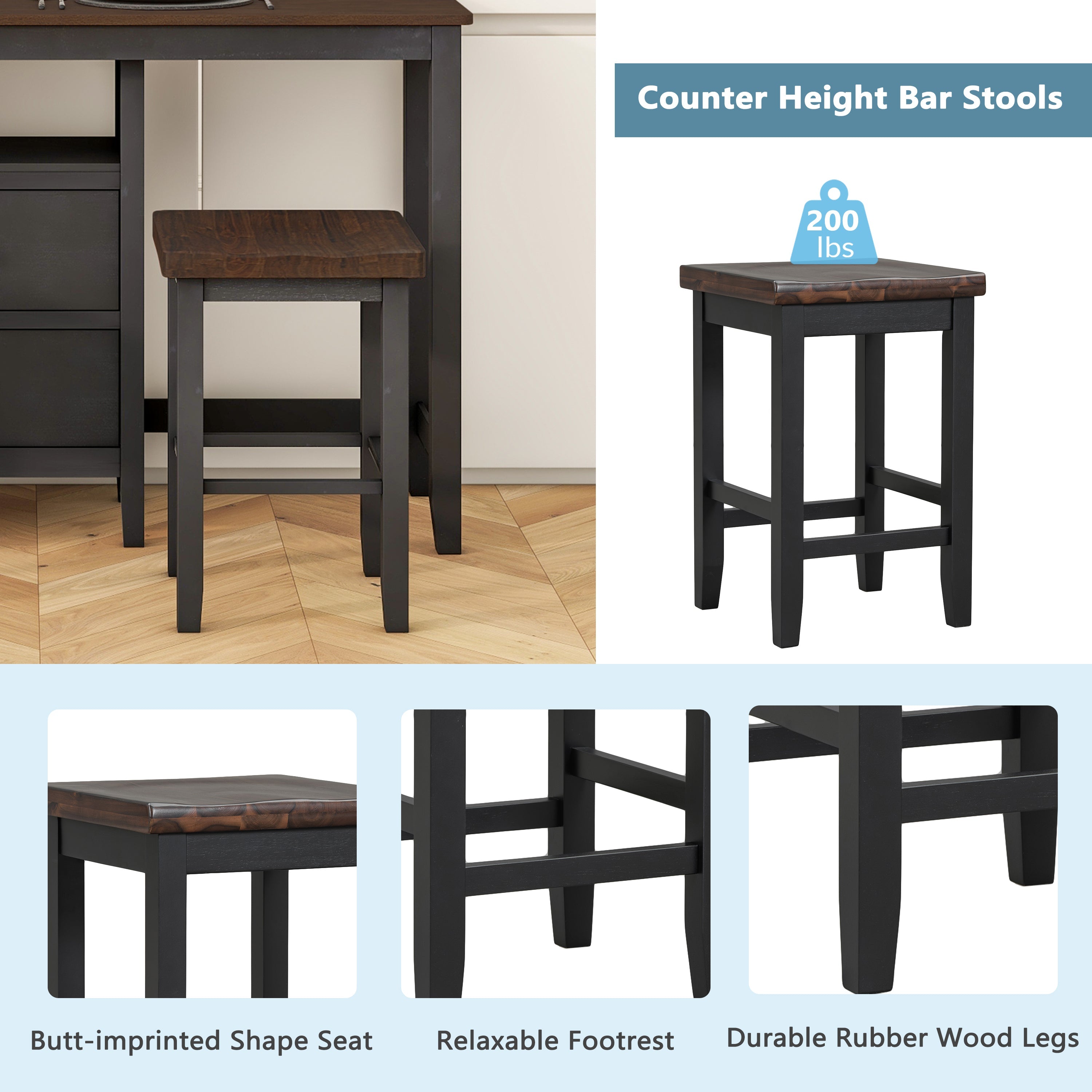 | Weight Capacity | Table:400 lbs; Each Stool Weight Capacity: 200 lbs |