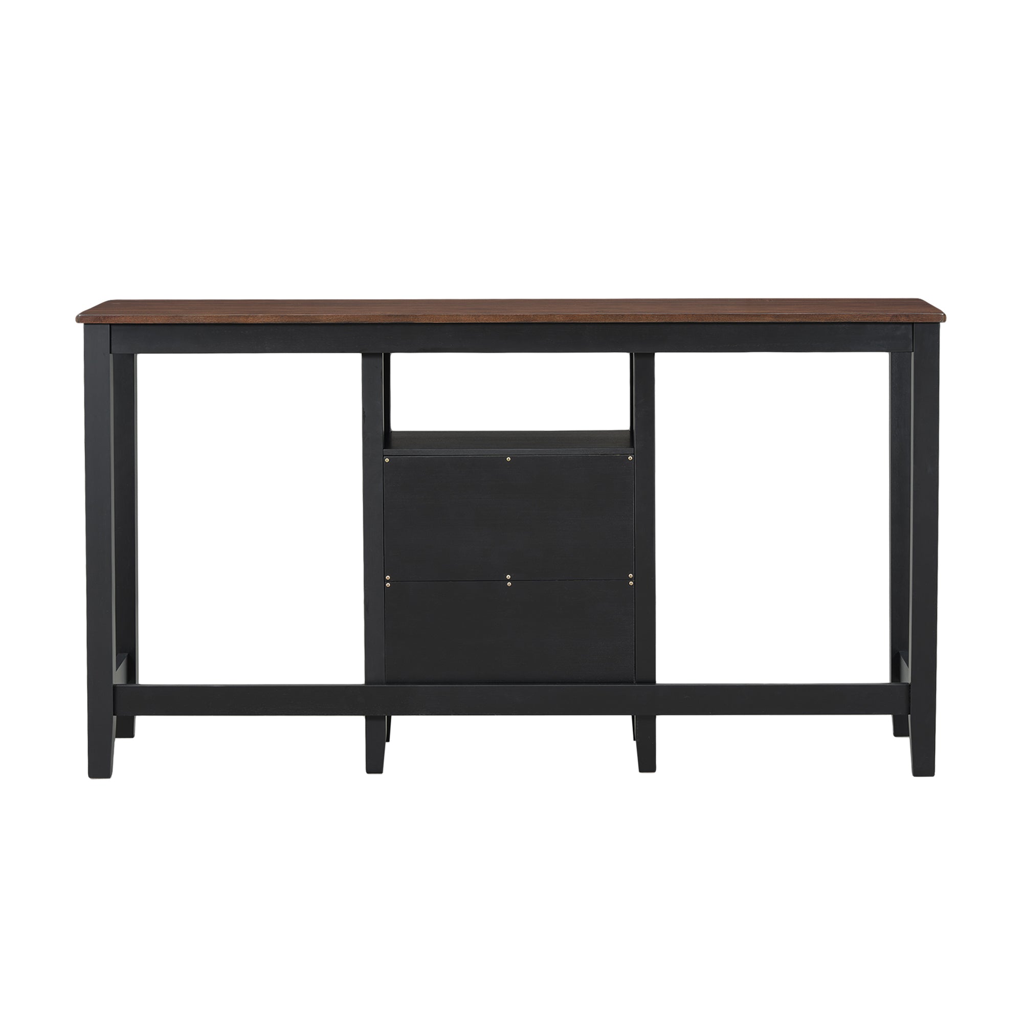 With the combination of two drawers and one shelf, this dining table features ample vertical space for storage and display. It provides a convenient, spacious location to store dinnerware, cookbooks, bottles, and other appliances!