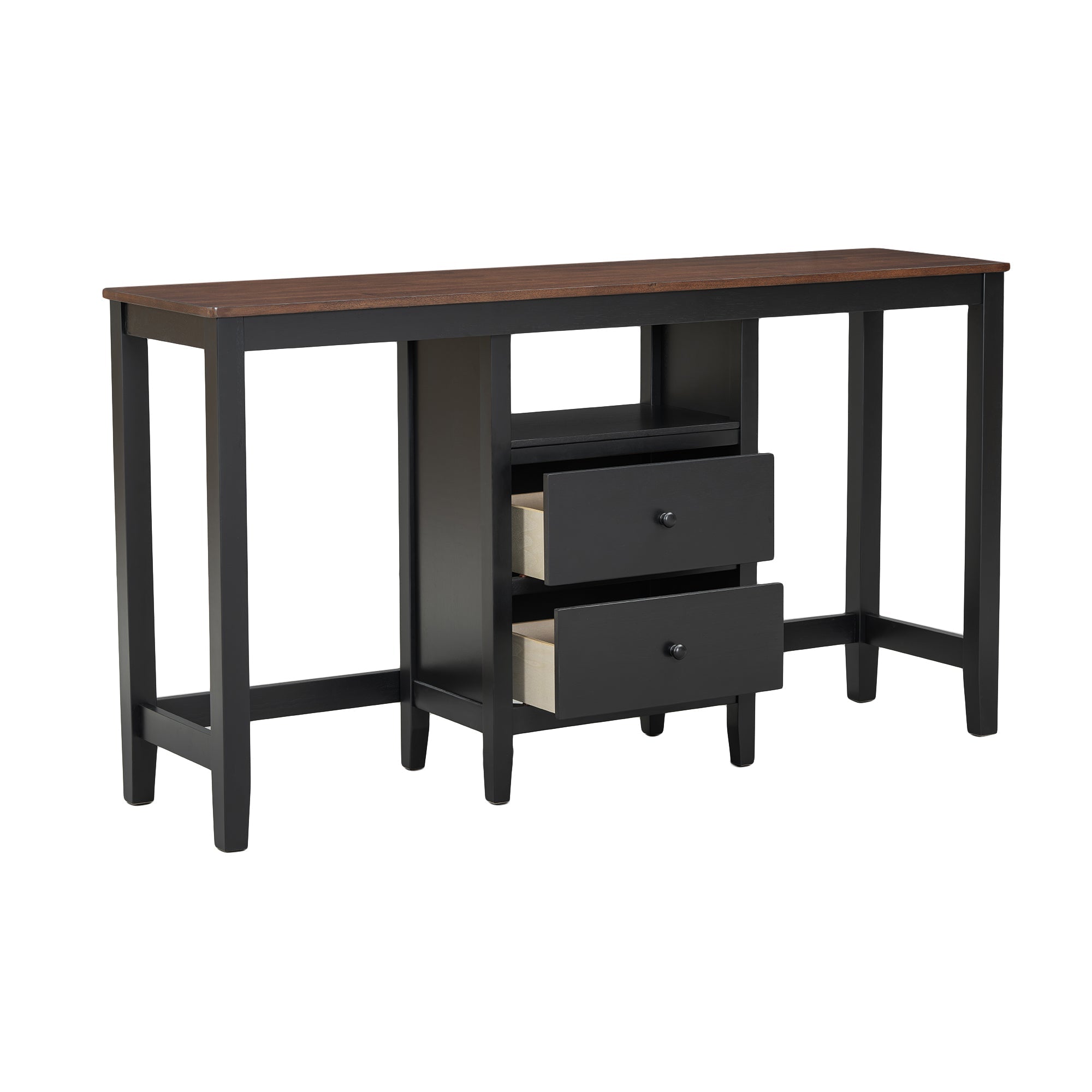 - [Optimal Table Storage] With the combination of two drawers and one shelf, this dining table features ample vertical space for storage and display. It provides a convenient, spacious location to store dinnerware, cookbooks, bottles, and other appliances!