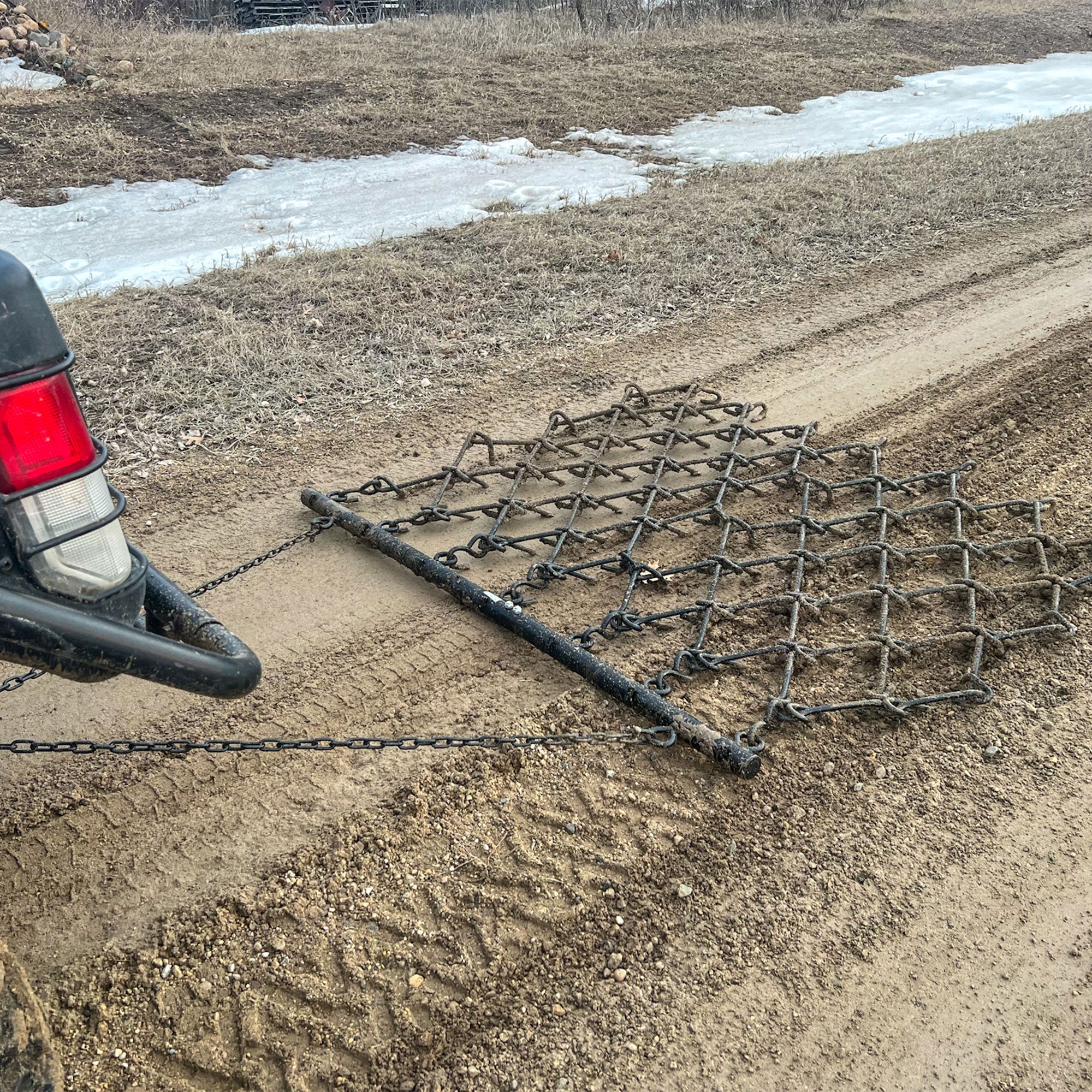 - Drag harrow measures 6 feet by 4 feet, providing a broad working width to cover more ground quickly and efficiently