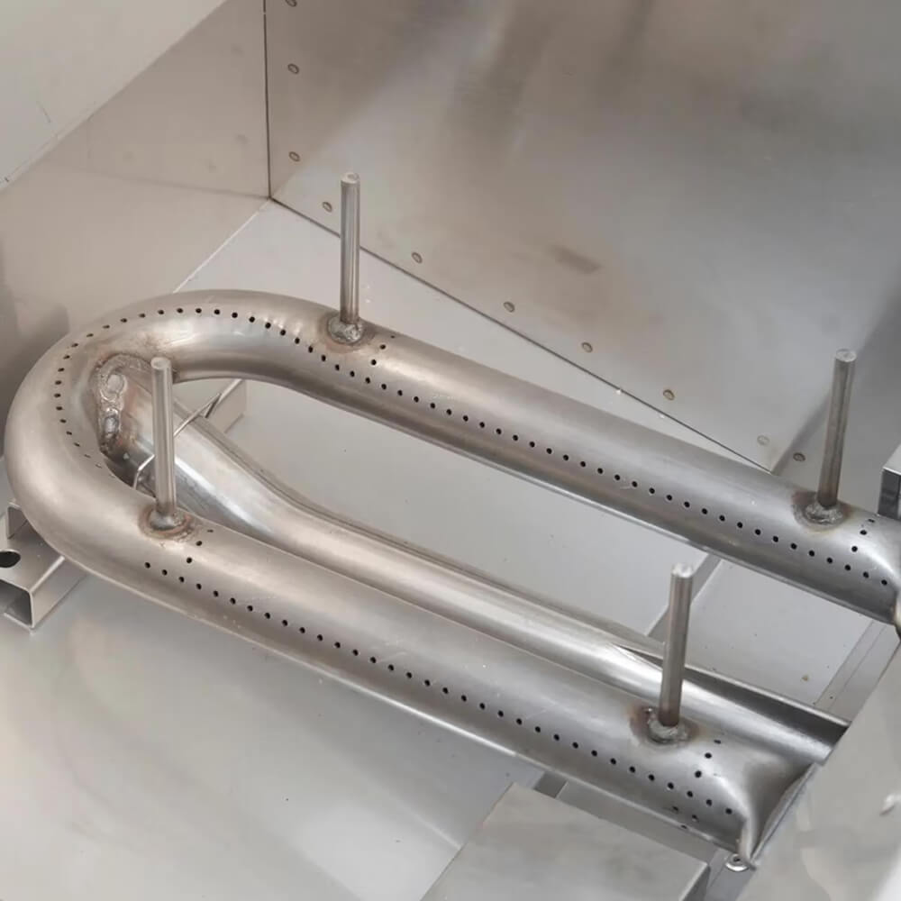 • Durable and luxurious, this grill is constructed from 304-grade stainless steel with a sleek satin finish. Ergonomically designed comfort-touch knobs and an angled analog thermometer make it easy to monitor and control your grill. The integrated wind guard ensures a steady flame, even on windy days.