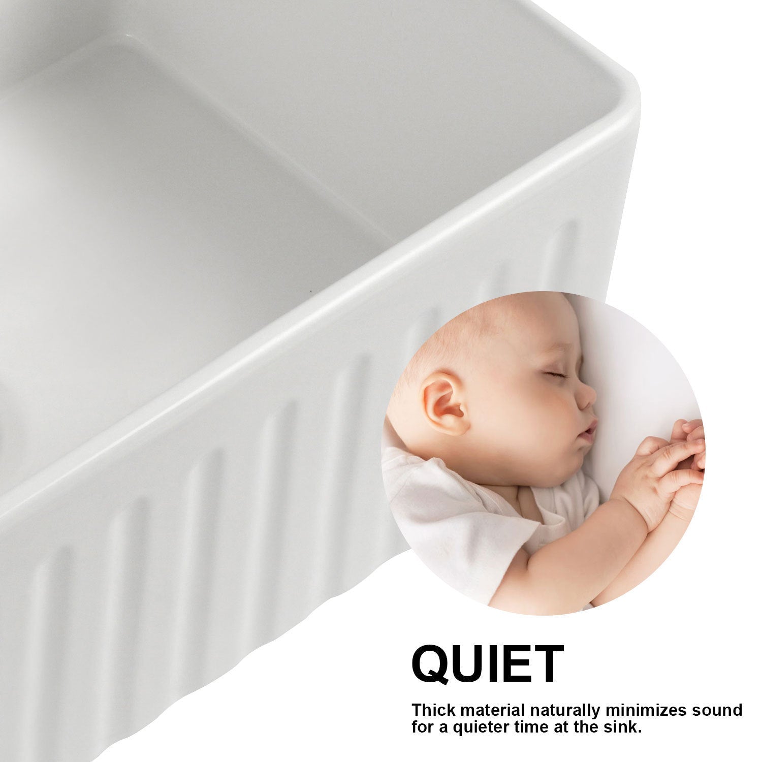 • Reversible: 1-side is smooth and flat, and the other side has a decorative fluted design, so you can decide how you want to install based om your preference, Double bowl design: 33″ L X 20″ W front-to-back gives you plenty of usable space, extra deep bowl: 10 in internal bowl depth gives ample space for all your dishes and pans.