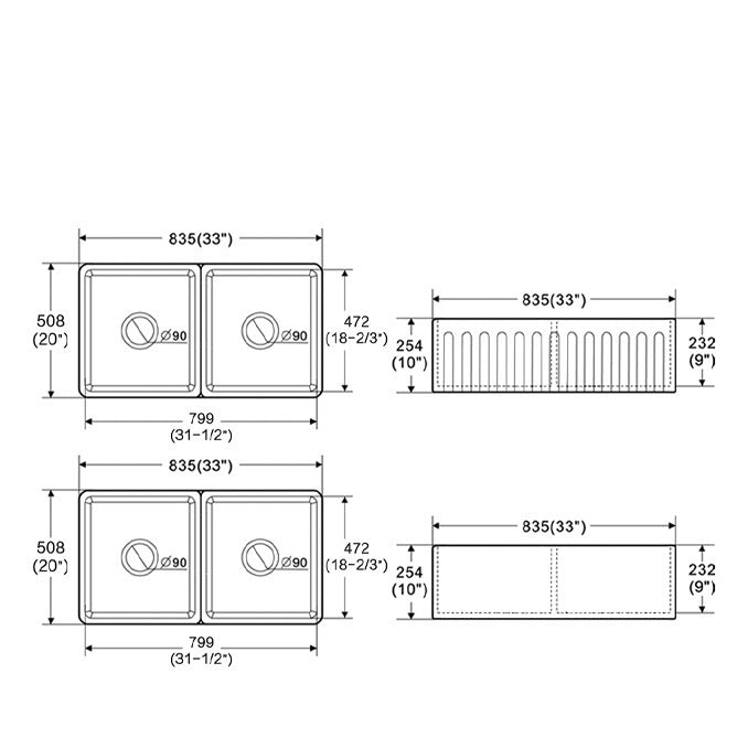 Be the first to review “Fireclay 33″ L X 20″ W Double Basin Farmhouse Kitchen Sink With Grid And Strainer”