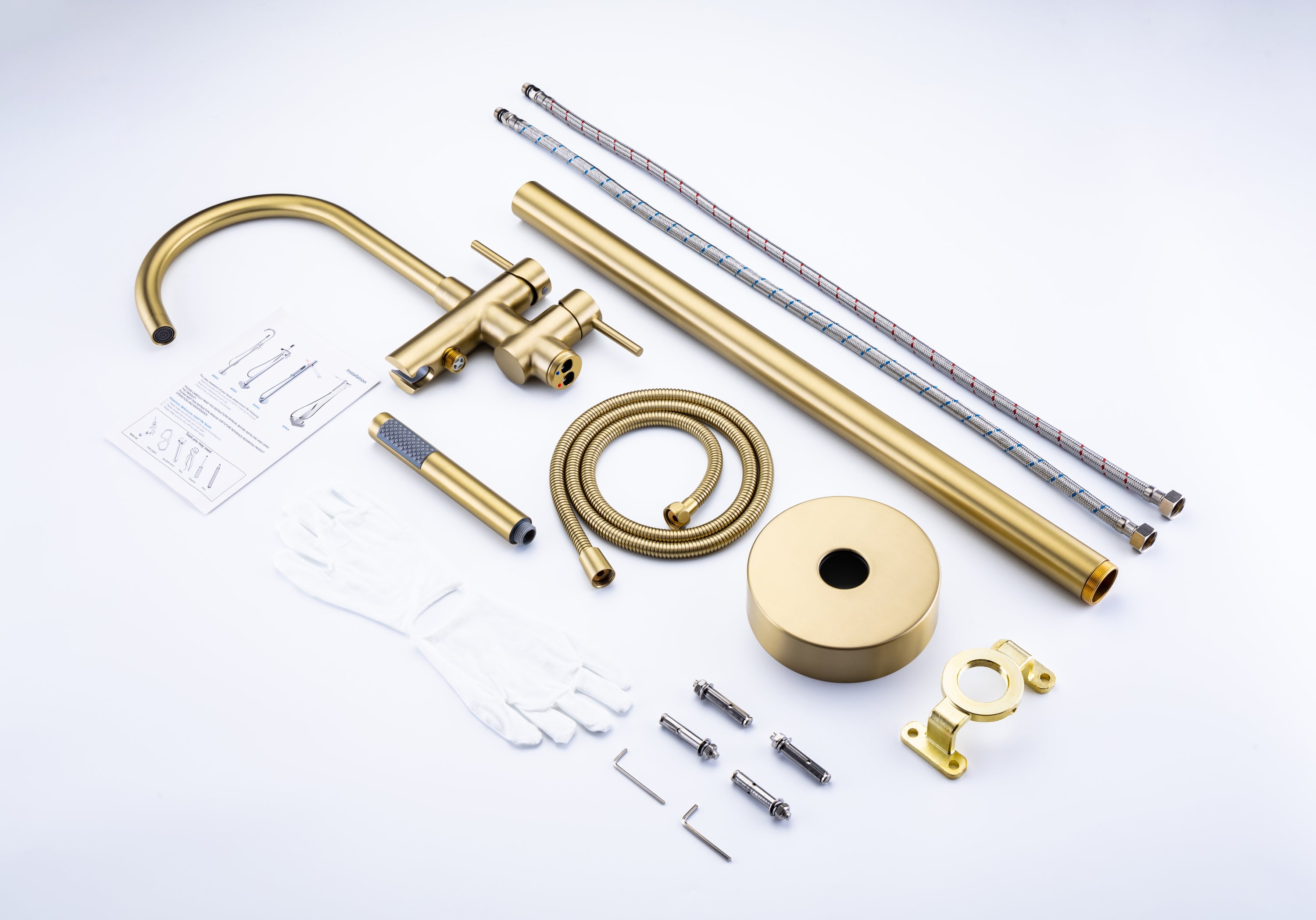 - 【What’s Included】bathtub faucet body, brass faucet tube, handheld shower, cold and hot hose, base cover, mounting hardware and installation instruction.
