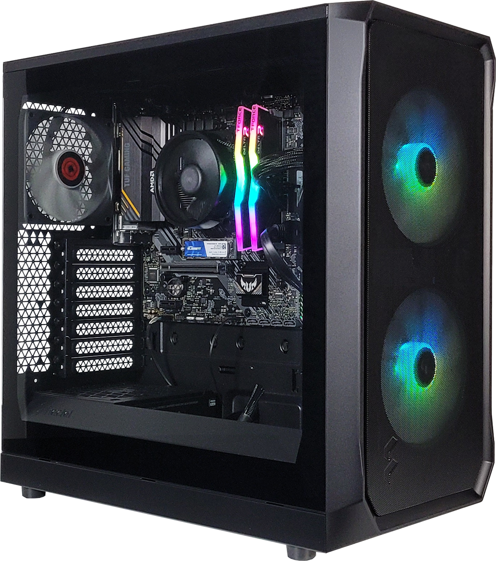 Fueled by the AMD Ryzen™ 5 5600GT and Radeon RX Vega Graphics, this build delivers smooth, reliable performance. The ASUS TUF GAMING A520M-PLUS WIFI motherboard keeps it rock solid, while 16GB T-Force Delta RGB DDR4 RAM and a 500GB NVMe SSD ensure speed and efficiency.