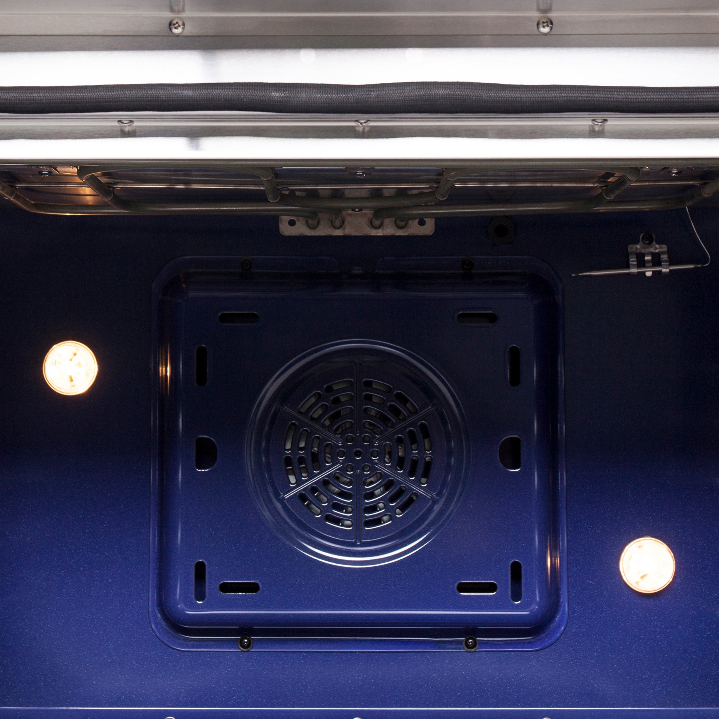 - Speckled Blue Enamel Interior. The oven interior features a speckled blue enamel finish and is illuminated by 2 halogen lights for a premium cooking experience