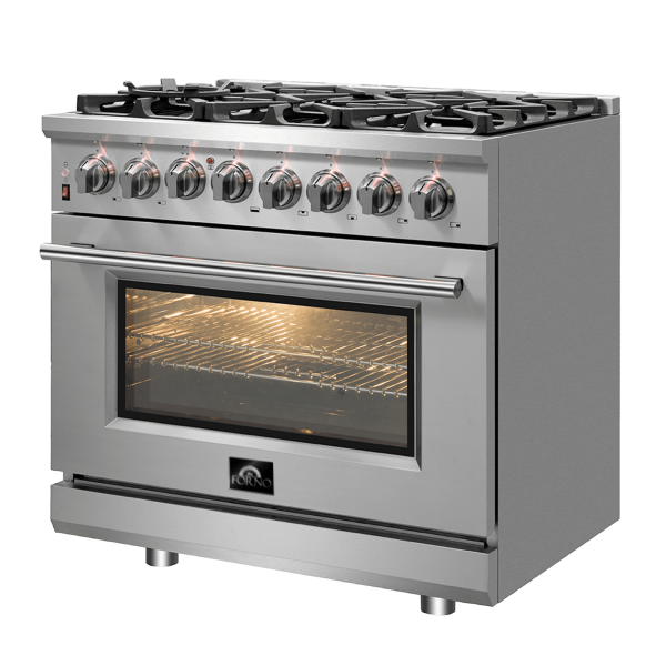 • Built to Last. Housed in a high-grade stainless steel body with zinc-coated metal knobs and bezels, the Forno 36-Inch Pro-Style Gas Range is designed to endure the test of time