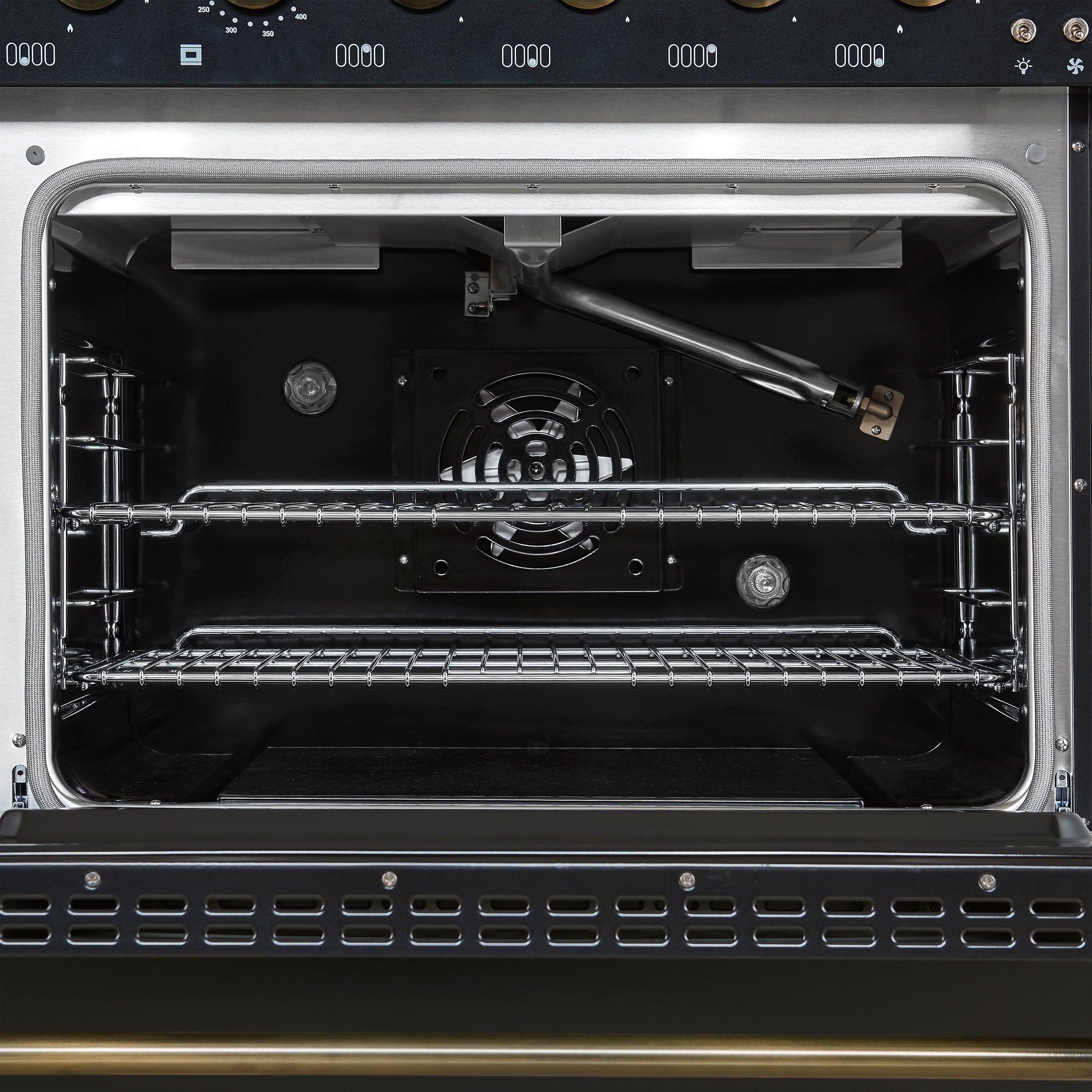 - Hidden Bake Burner: Positioned beneath the oven floor to prevent spills from burning, making cleanup easier and reducing odors.