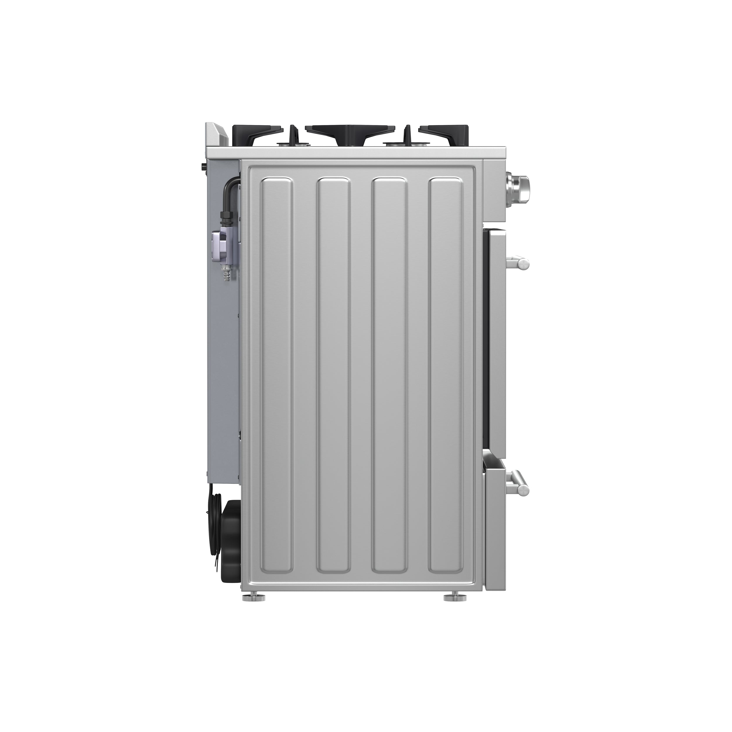 Continuous cast iron grates ensure even heat distribution and stable cookware mobility. - Spacious Oven Capacity – The 24” oven boasts a generous 2.3 cu. ft. capacity. Combined broil and bake output of 13,000 BTUs, complemented by an internal cooling fan for temperature control.
