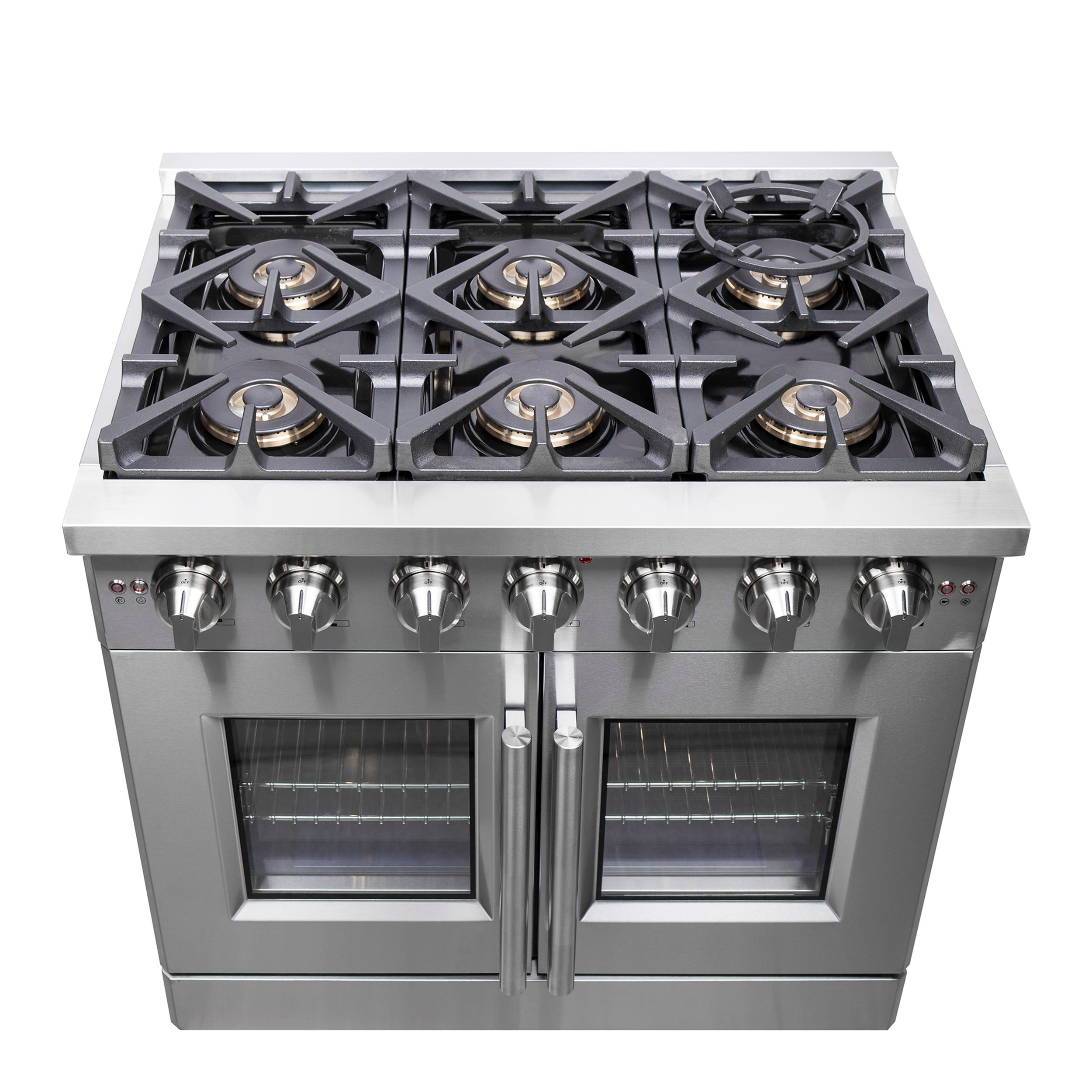 • High-Performance Sealed Dual-Ring Burners. 6 sealed dual-ring brass burners combine to deliver a total stove-top output of 120,000 BTU, offering exceptional heat control.