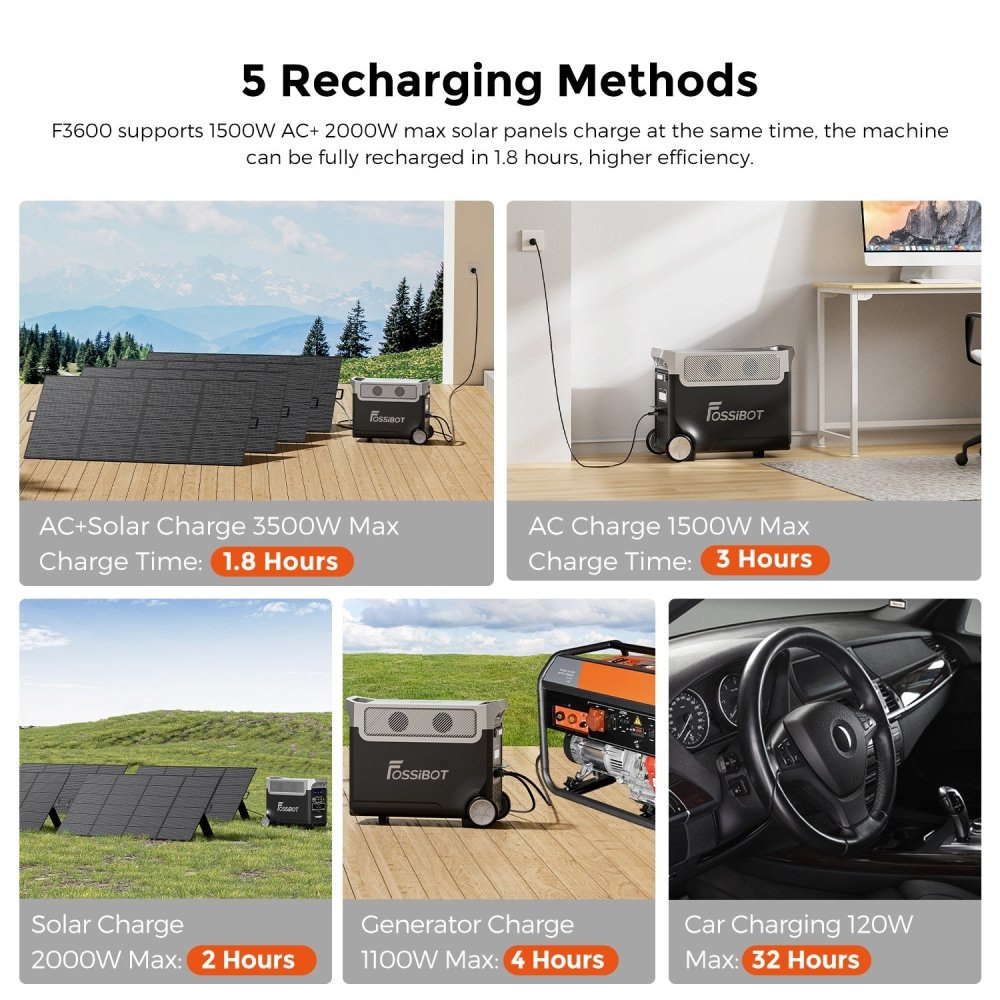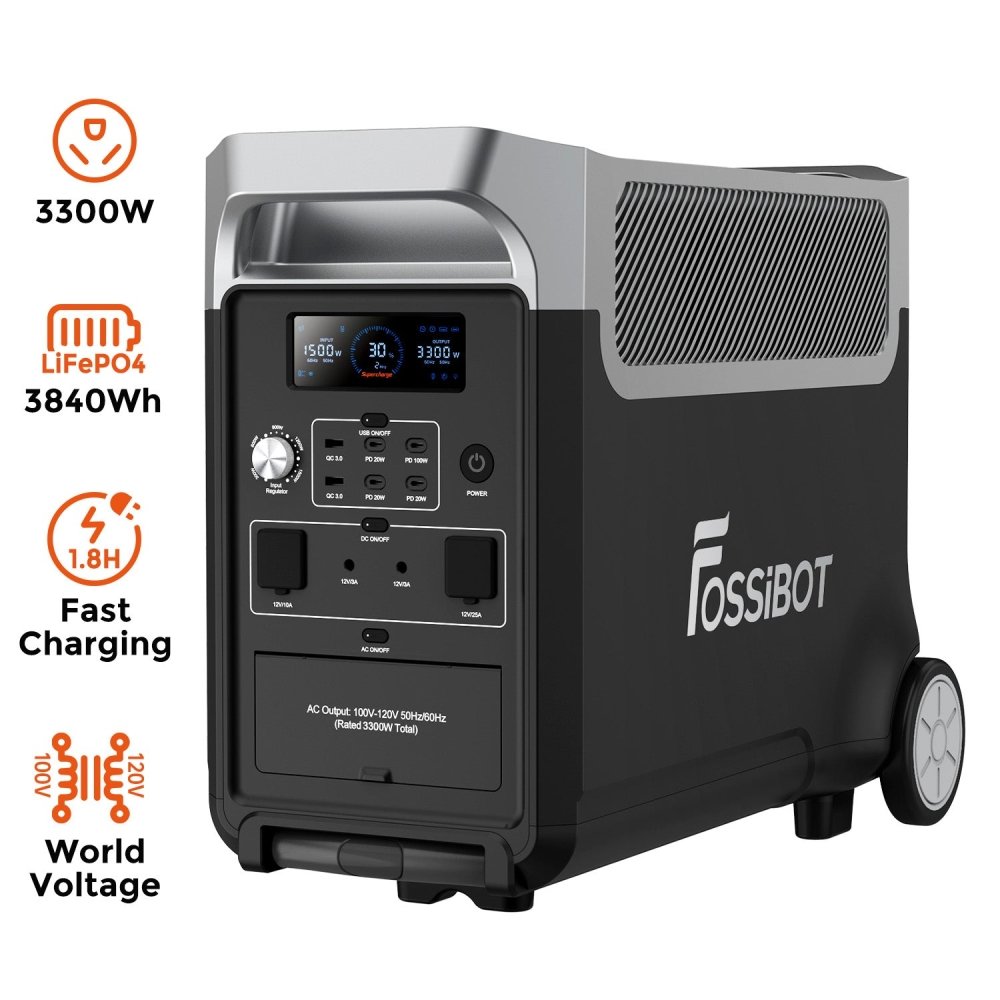 - The FOSSiBOT F3600 is a powerhouse, boasting an unprecedented 3,840Wh capacity, making it perfect for everything from outdoor adventures to home backup power. With enough juice to power 99% of your appliances, from TVs to refrigerators, it’s your reliable companion wherever you go.