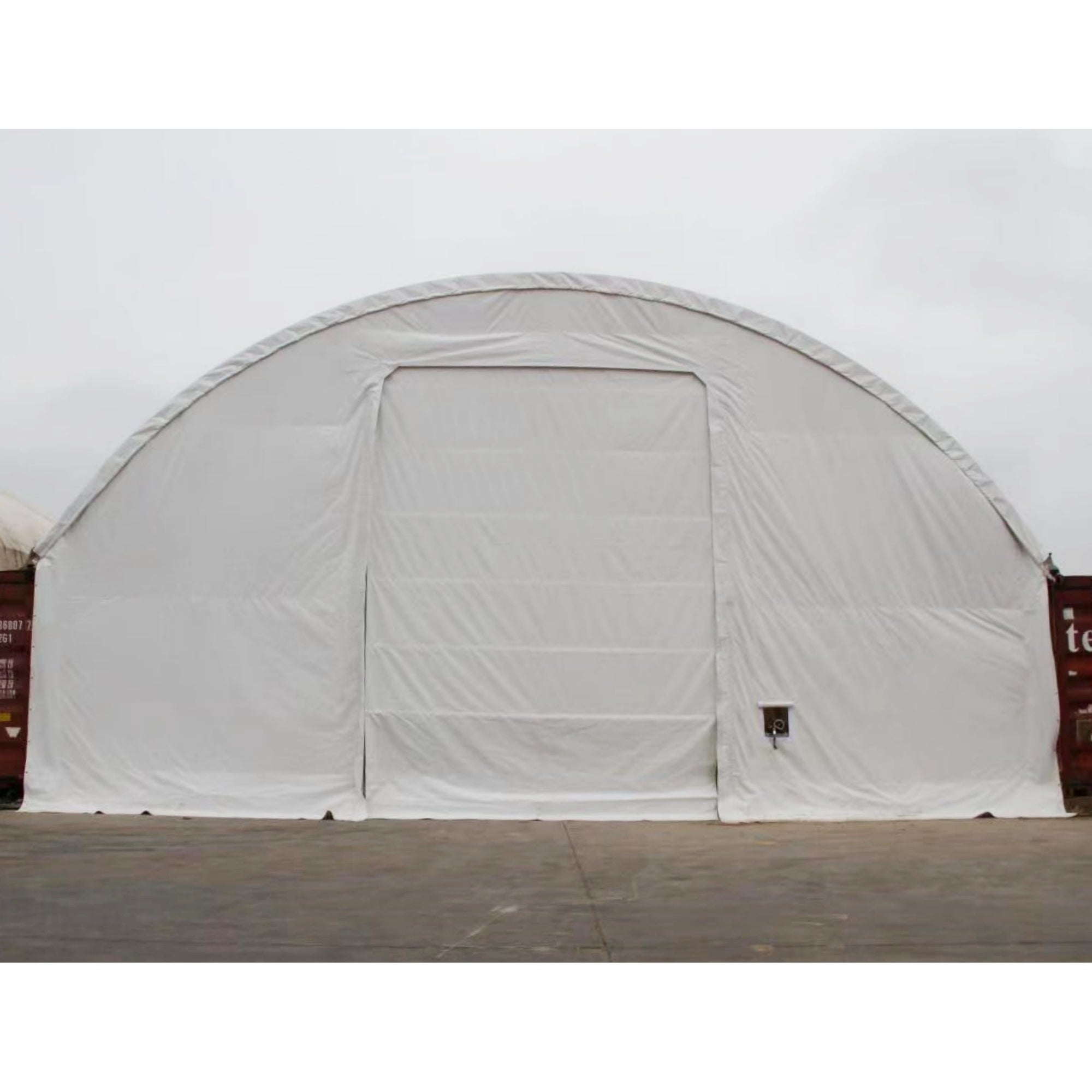 Introducing the Front Cover for Gold Mountain Shipping Container Canopy Shelter 40’x40’x11′ – a robust shield for elevated storage solutions. Tailored to fit seamlessly, this cover enhances your canopy’s performance by providing reliable protection against the elements. Crafted from durable, weather-resistant material, it safeguards your stored items from sun, rain, and snow. Effortless to install, it instantly transforms your canopy into a secure storage space. Ideal for protecting vehicles, and equipment, or creating an extended workspace, the Front Cover for Gold Mountain Canopy Shelter ensures durability and functionality. Elevate your storage capabilities with this essential addition to shield your valuables year-round.