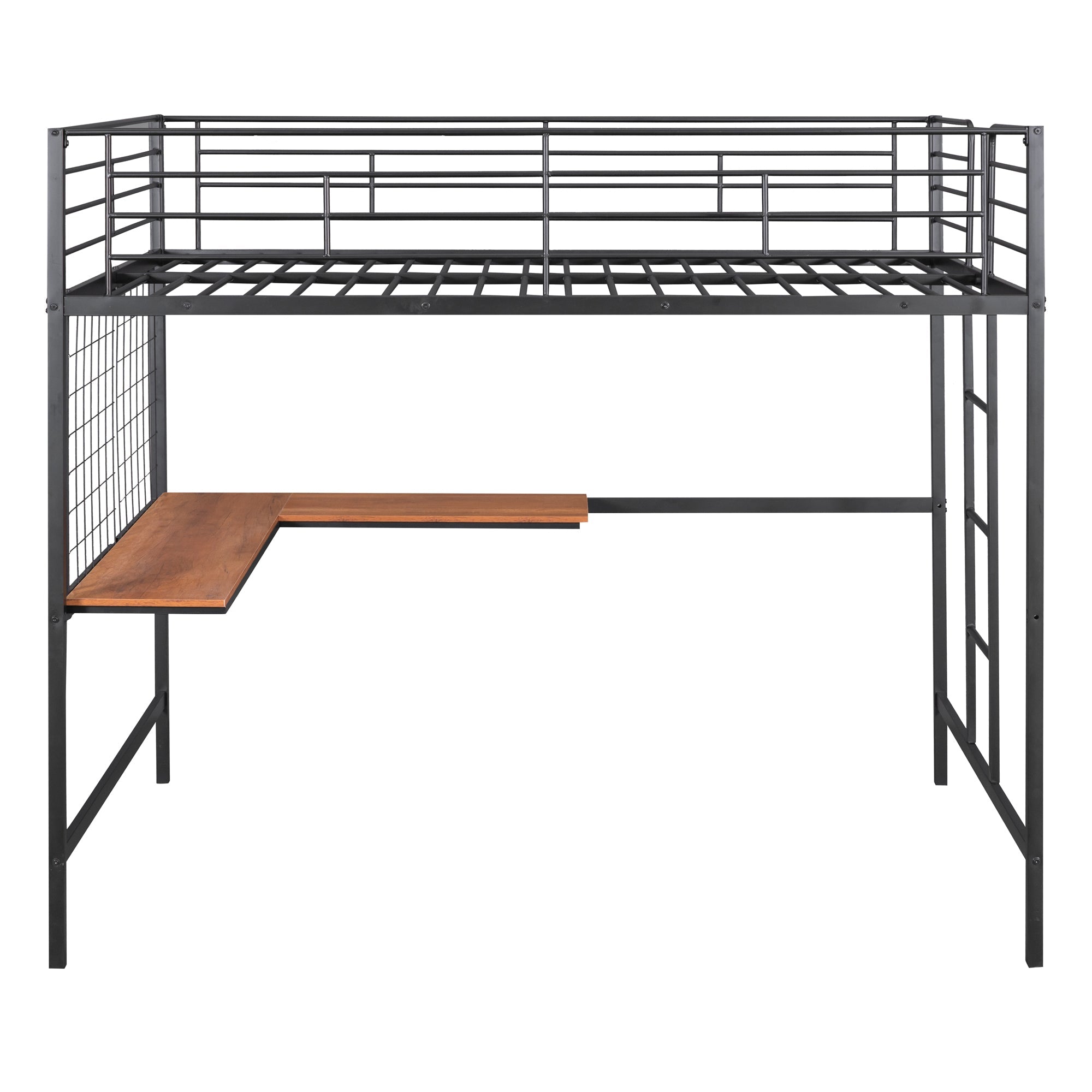 Full Metal Loft Bed with Desk and Metal Grid
