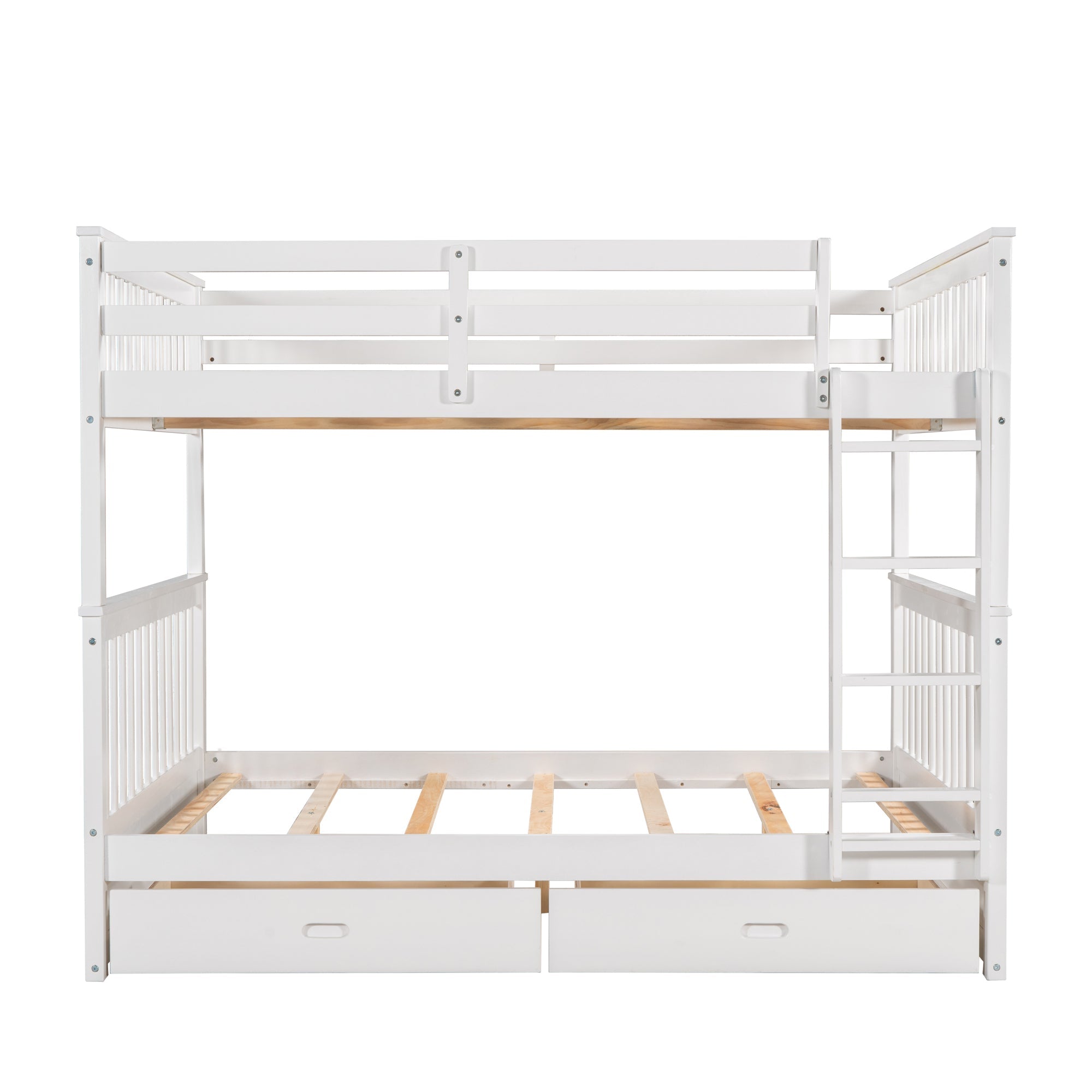 Full-Over-Full Bunk Bed with Ladders and Two Storage Drawers (White)