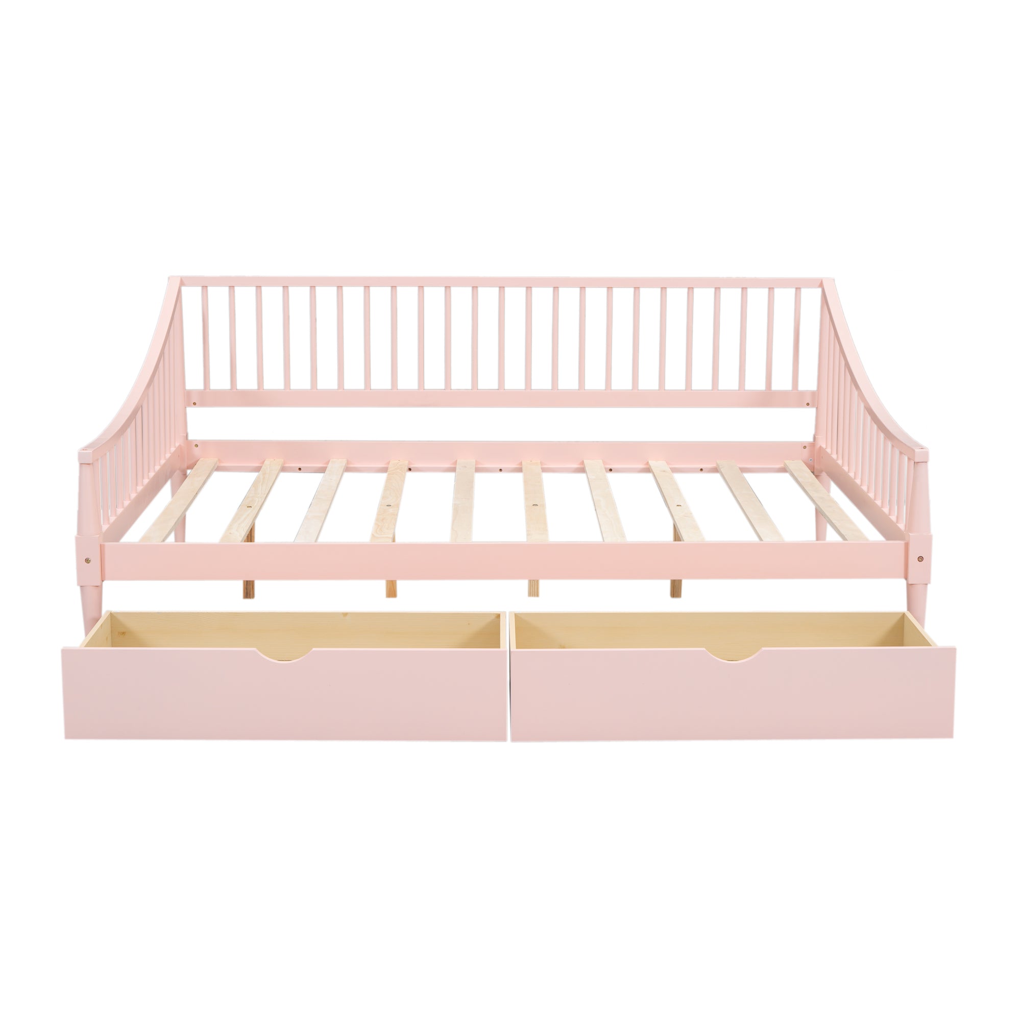 Full Size Daybed with Two Storage Drawers and Support Legs, Pink