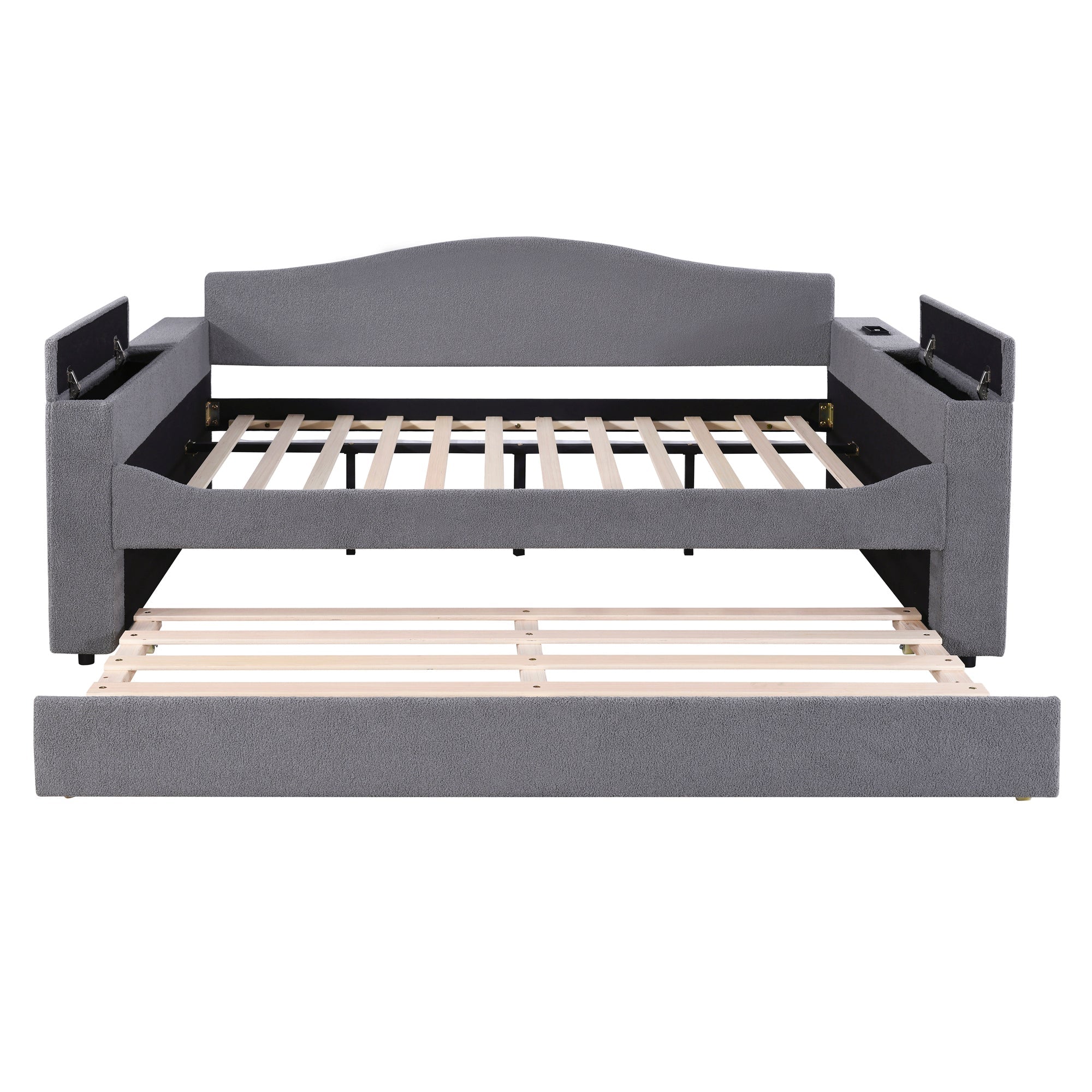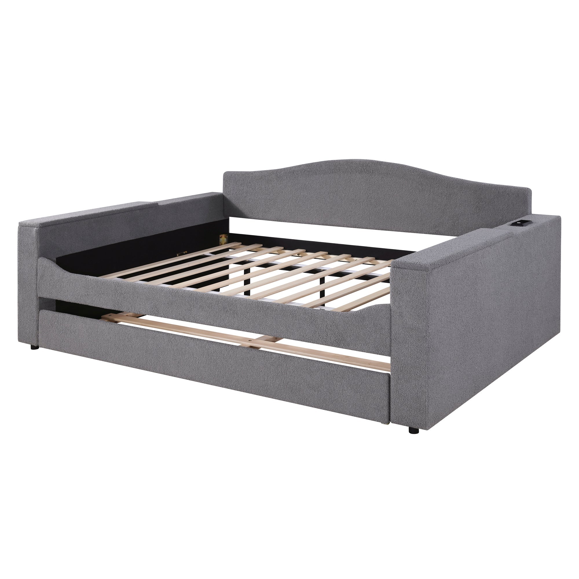 Be the first to review “Full Size Upholstered Daybed with Storage Armrests, Trundle and Latest Integrated Bluetooth Audio System, Teddy Fleece, Gray”