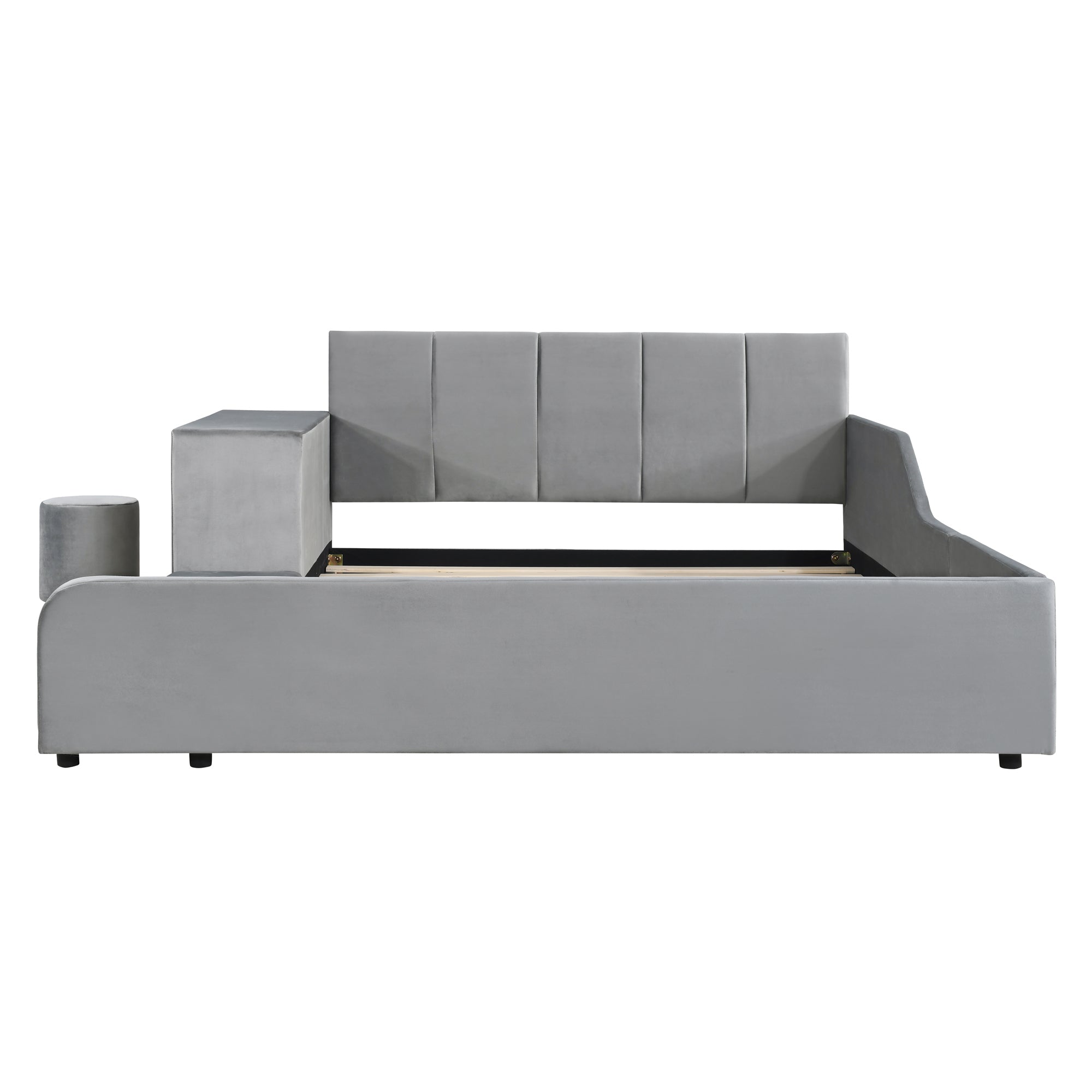Be the first to review “Full Size Upholstered Grounded Bed, Mother & Child Bed with Bedside Desk and Little Round Stool, Velvet, Gray” Cancel reply