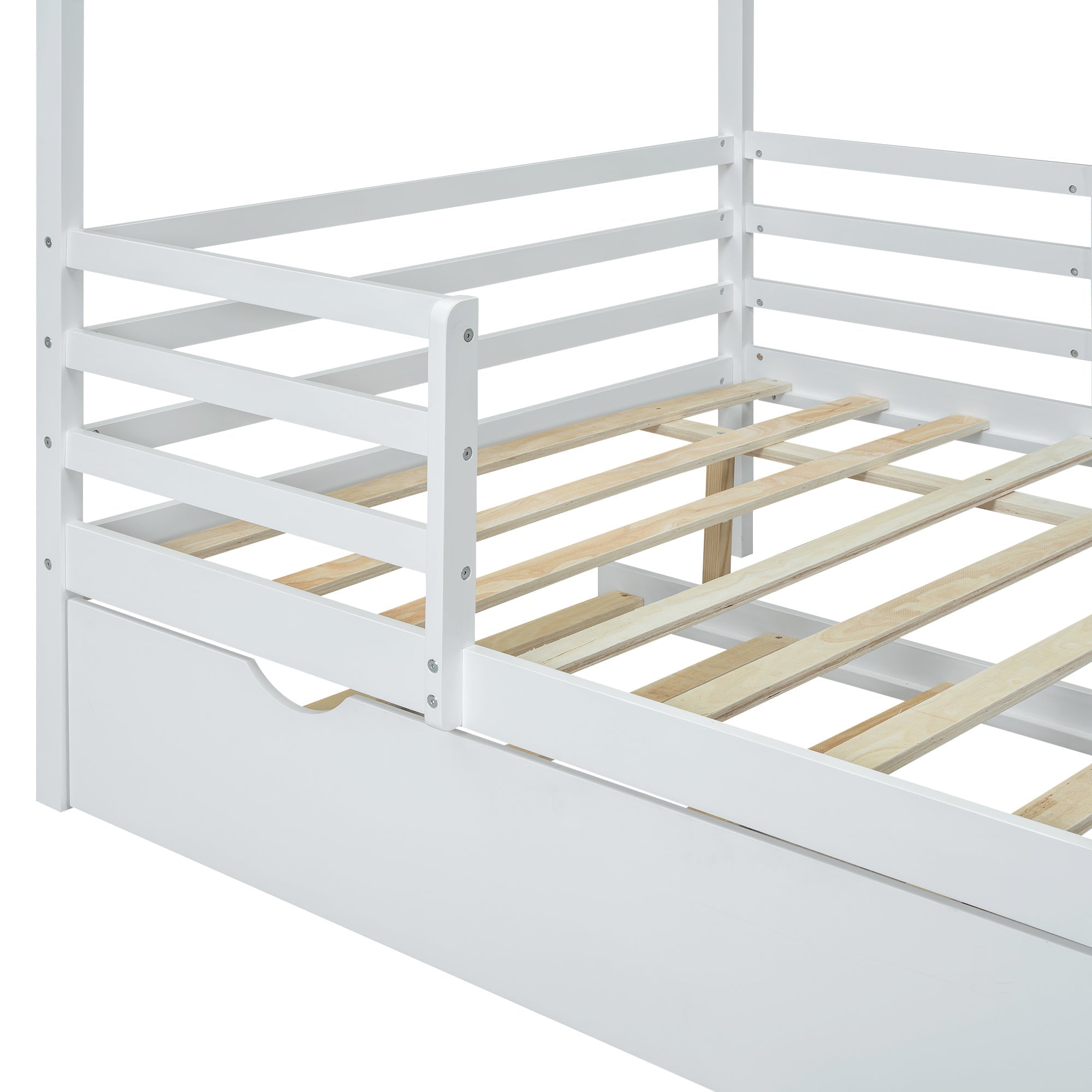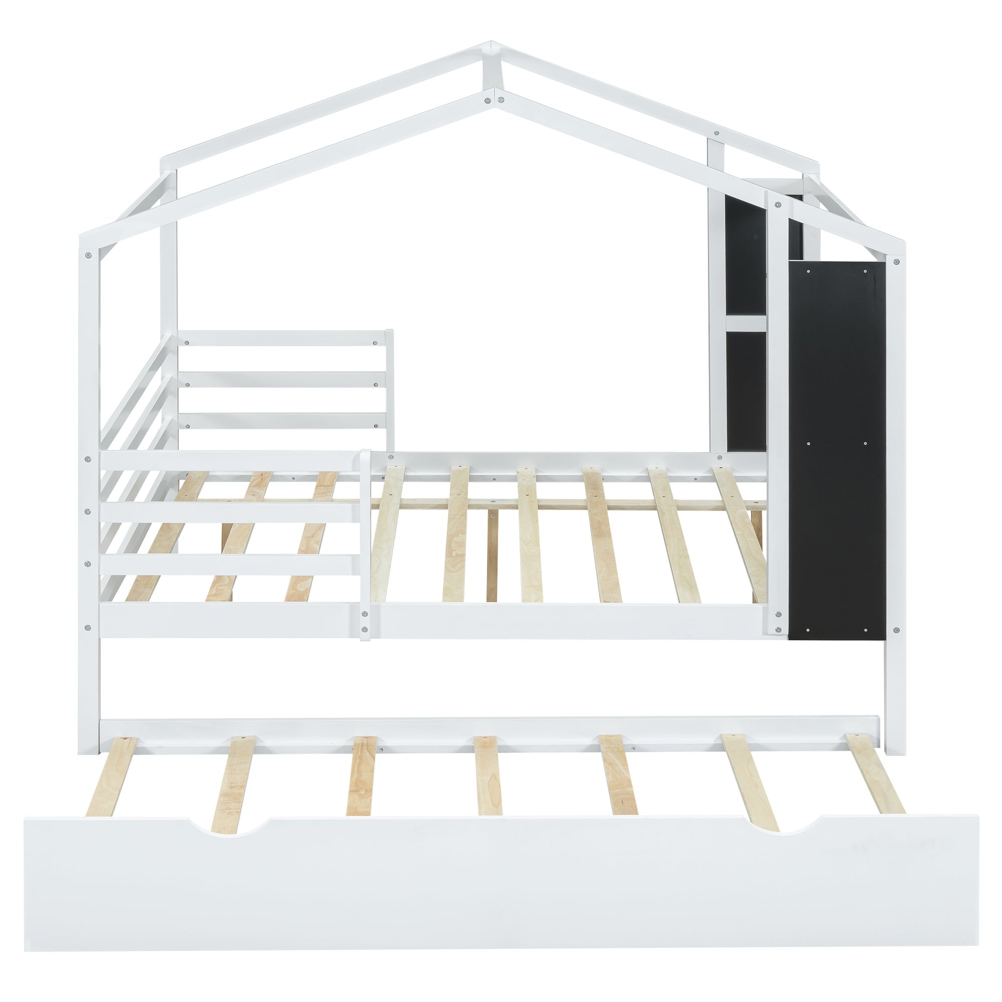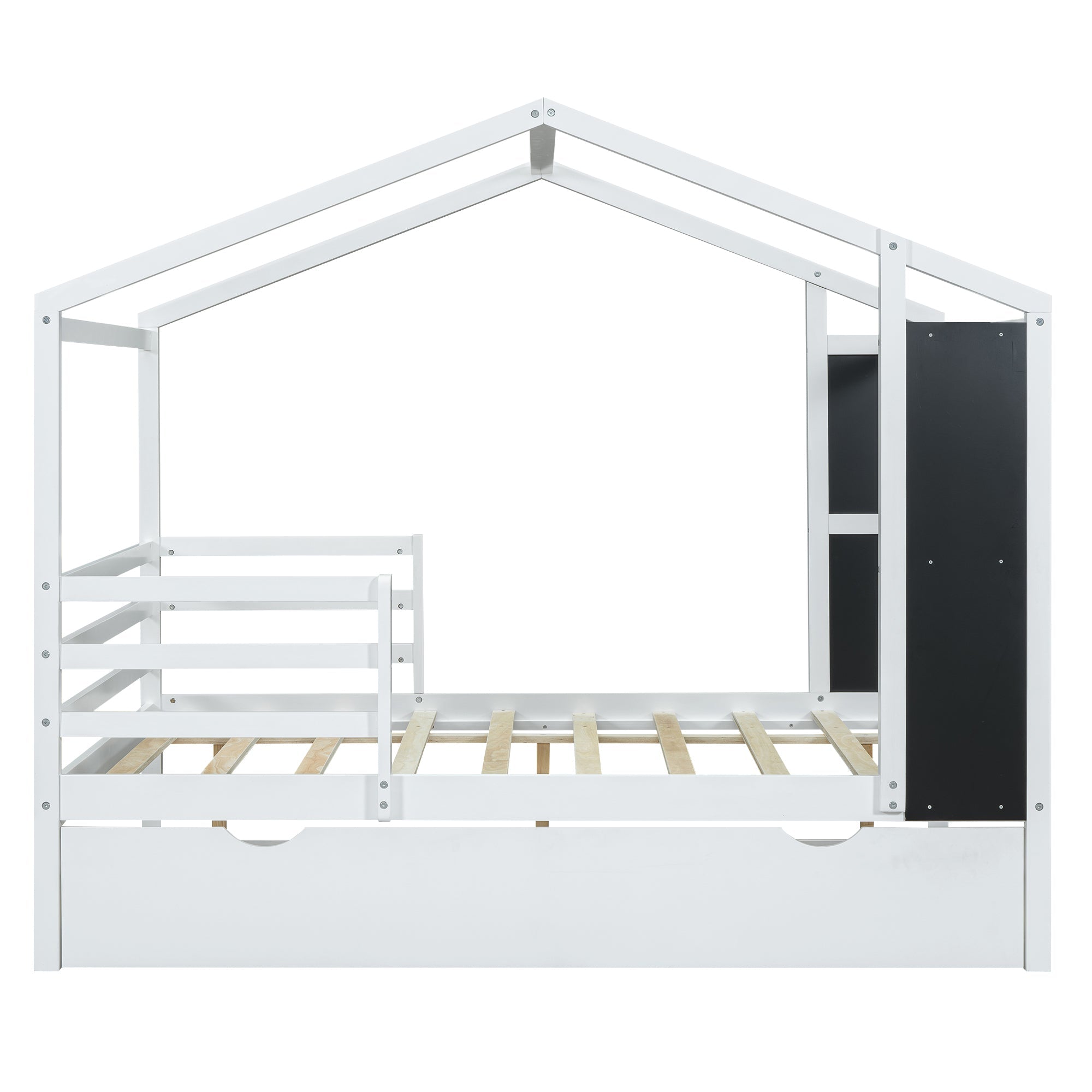 Be the first to review “Full Size Wood House Bed with Fence and Writing Board, White”