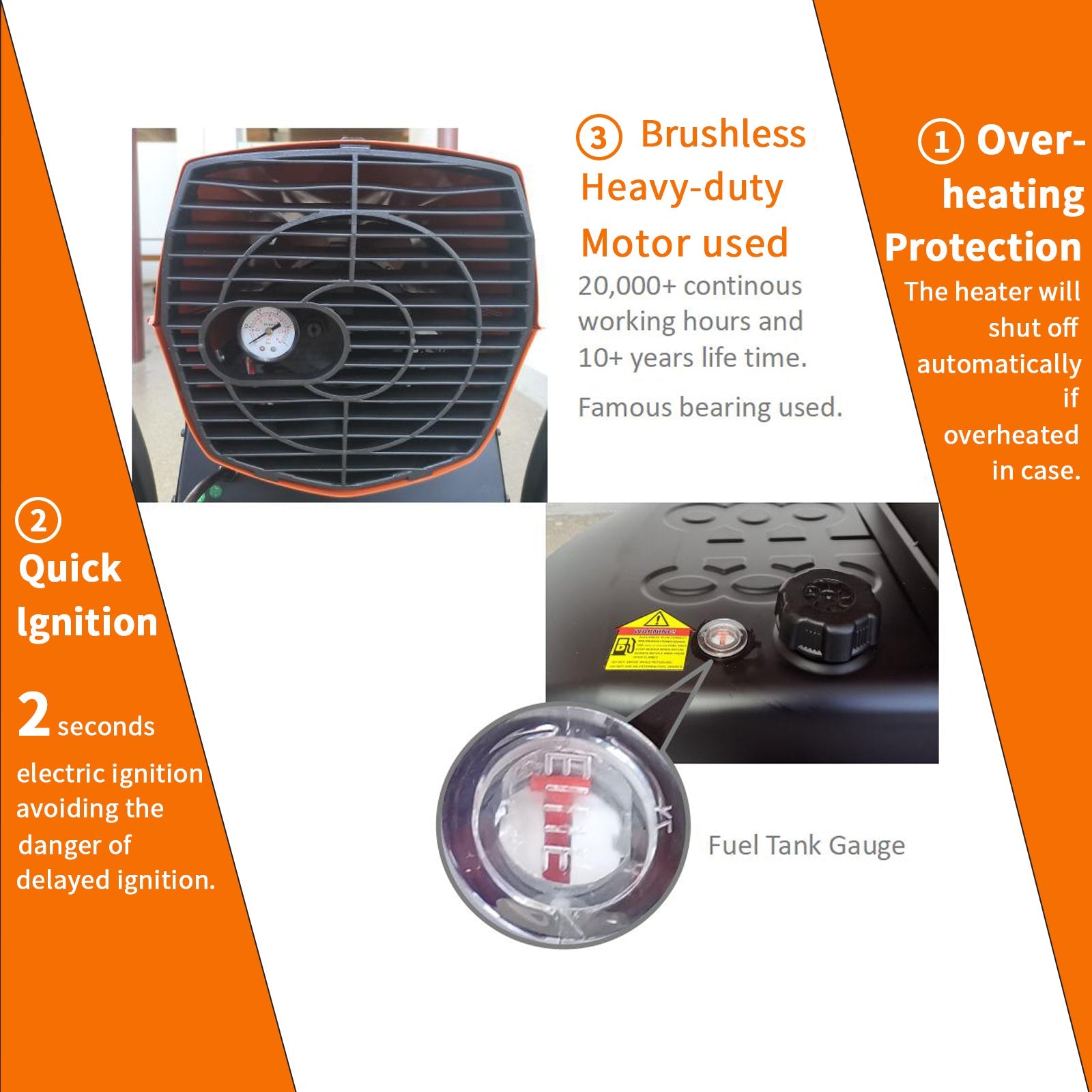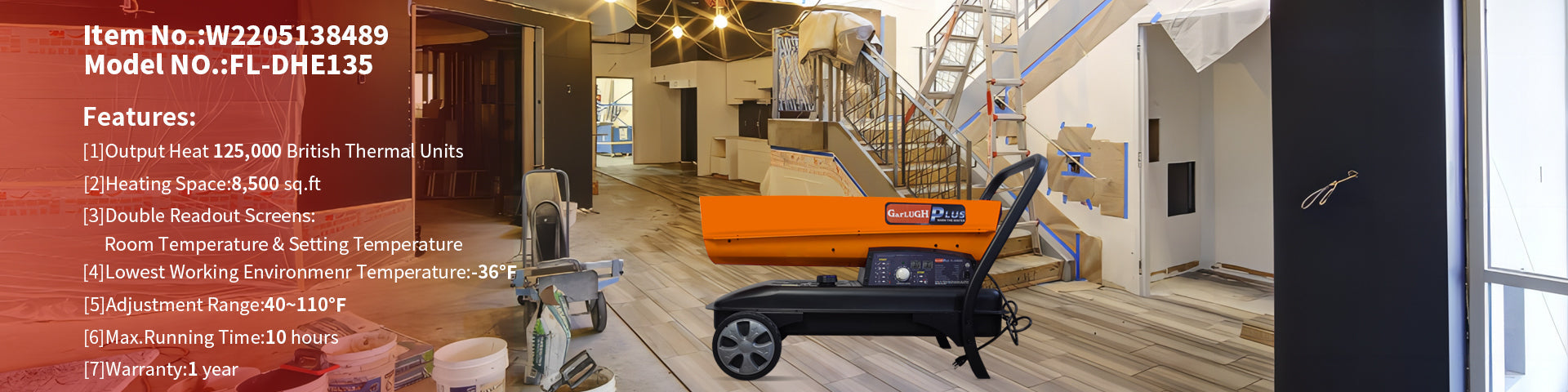 - [VARIOUS FUEL OPTIONS] GarLUGH heater was designed to use various kind of fuels, including Kerosene, Diesel, Jet fuel,etc. (DO NOT USE GASOLINE).