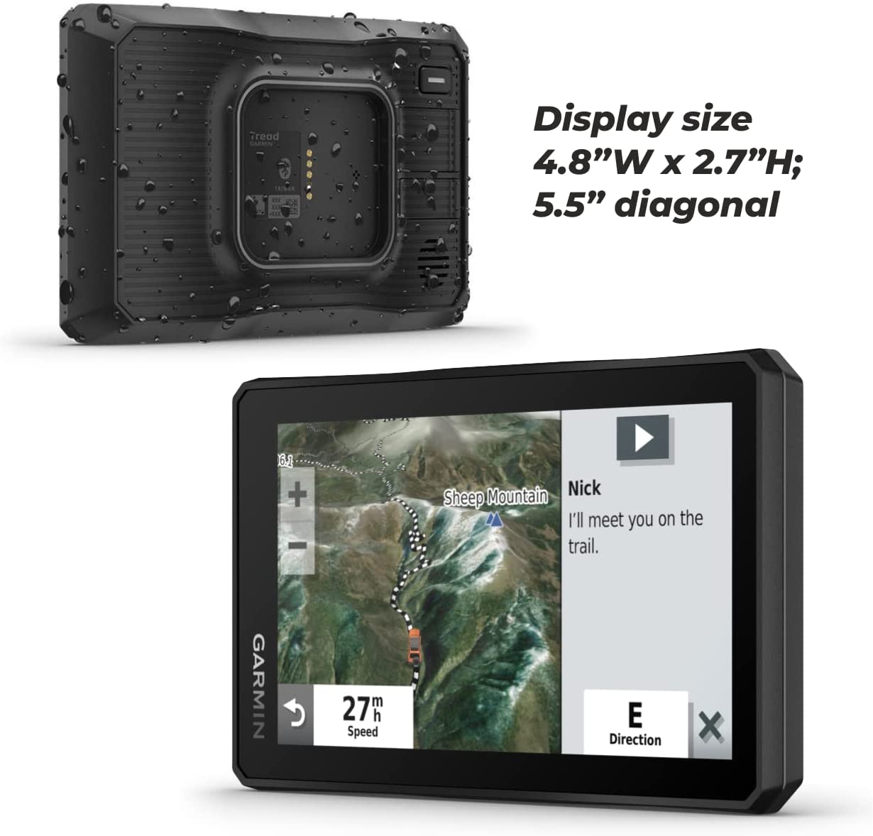 For improved off-road excursions, this tough, 5.5″ powersport navigator includes topography that has already been loaded. Tread is designed to handle rough terrain, sweltering heat, and inclement weather and was made exclusively for enthusiasts of side-by-side, ATVs, and snowmobiles. The US Forest Service roads and trails with Motor Vehicle Use Maps, topographic maps of North and Central America, US public and private land boundaries, and downloadable, non-subscription BirdsEye satellite imagery are all included in this Garmin GPS navigator. To keep in touch all around the world, pair with an inReach® satellite communicator that is compatible (not supplied). Tread may also be used to navigate and track your dogs from your car using specific Garmin GPS dog trackers (not supplied).