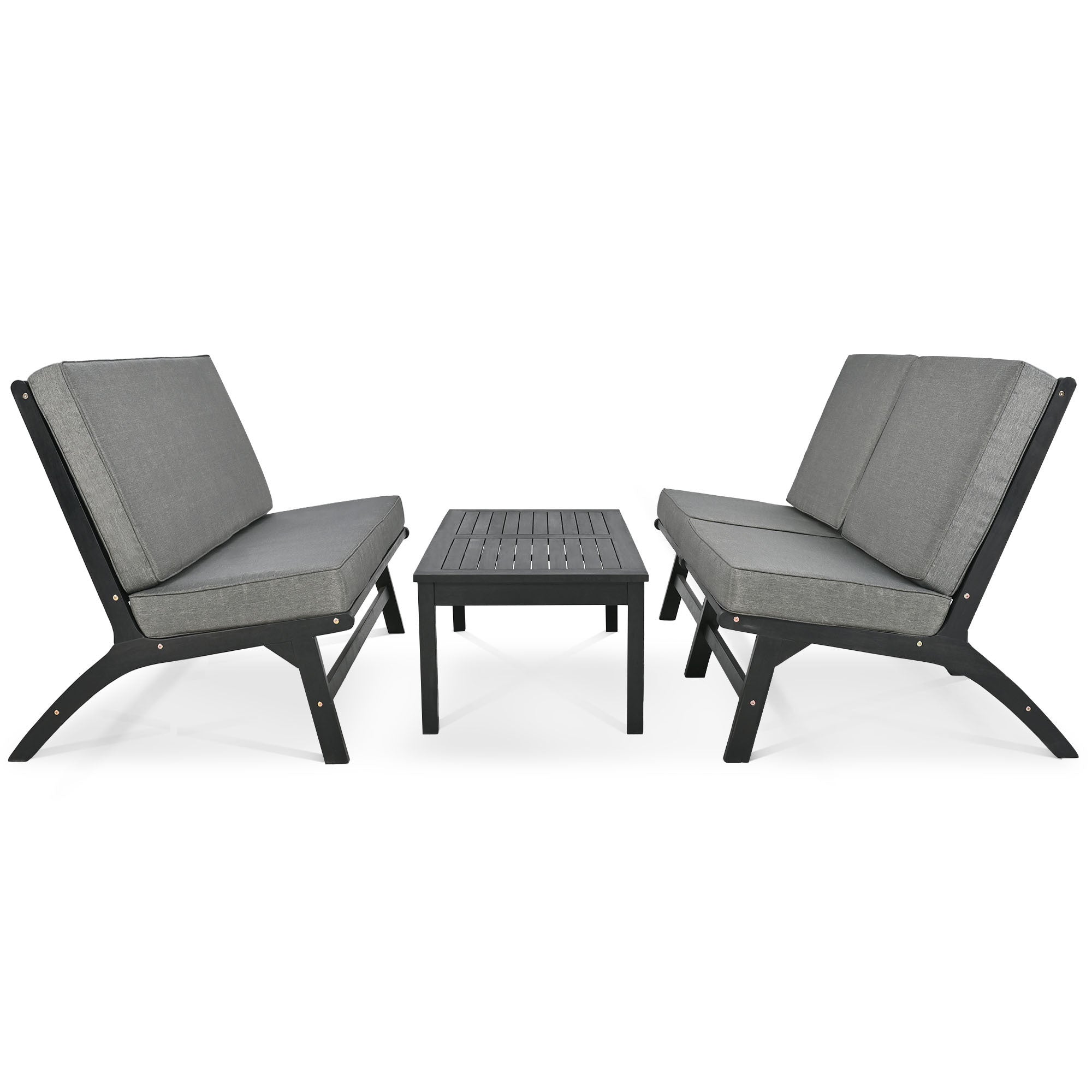 GO 4-Piece V-shaped Seats set, Acacia Solid Wood Outdoor Sofa, Garden Furniture, Outdoor seating, Black And Gray