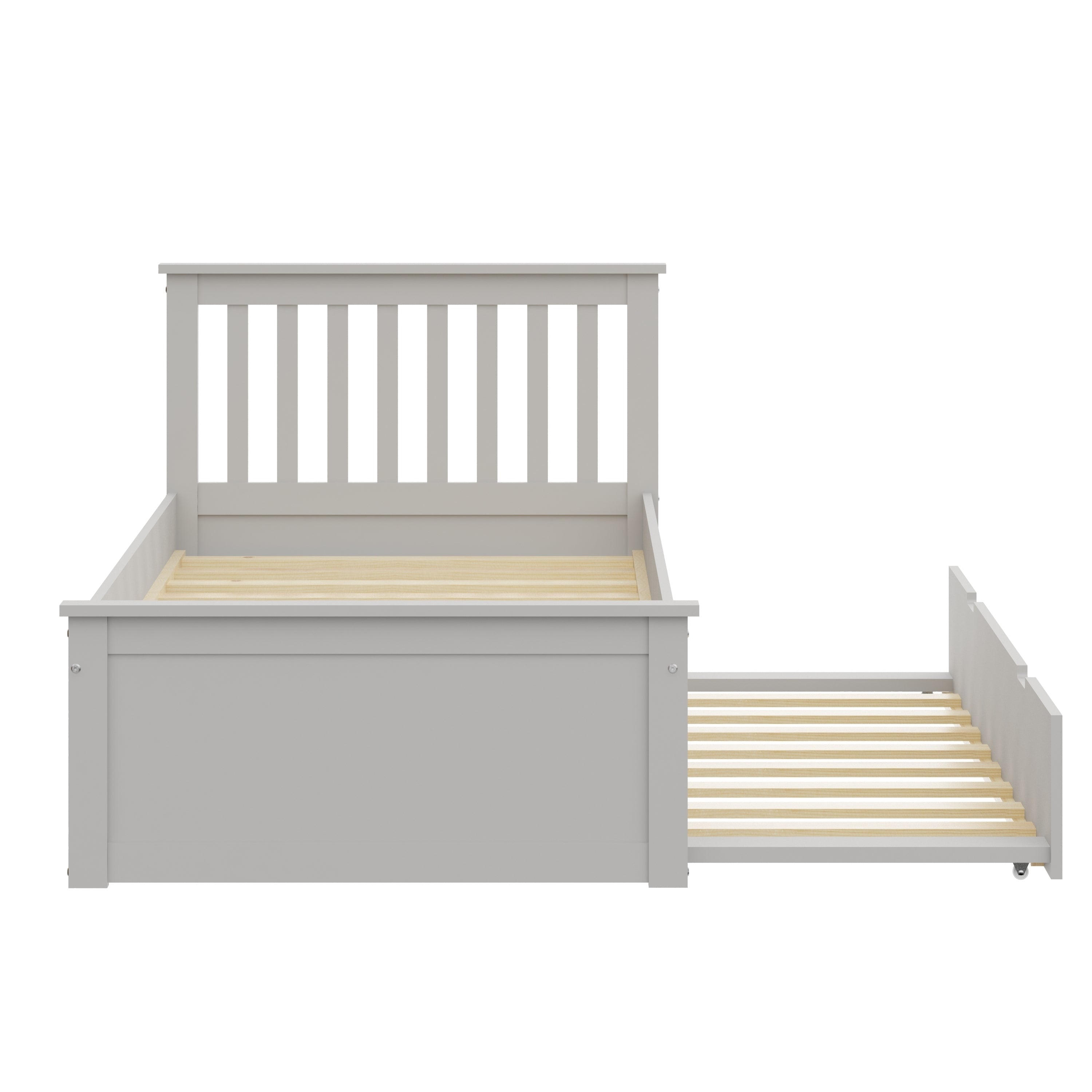 Gray Twin Bed with Trundle, Solid Wood Malibu Bed Frame with Twin Size Pull-Out Trundle for Kids and Toddlers