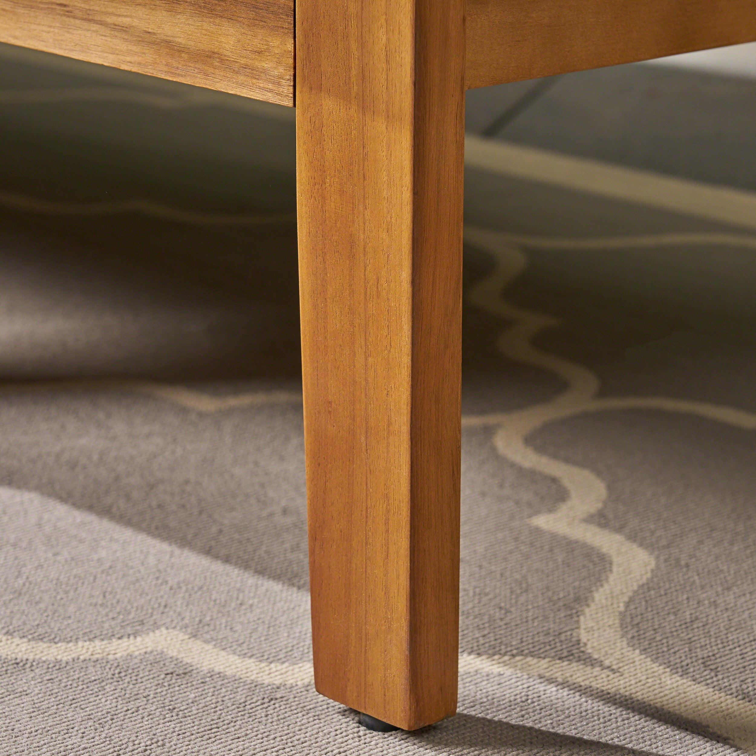 - Acacia Wood: Made with acacia wood that brings a sleek and exotic look to your space, this durable hardwood naturally withstands the elements and will not darken over time. Acacia wood is perfect as a solid, heavy frame that resists wear and tear.