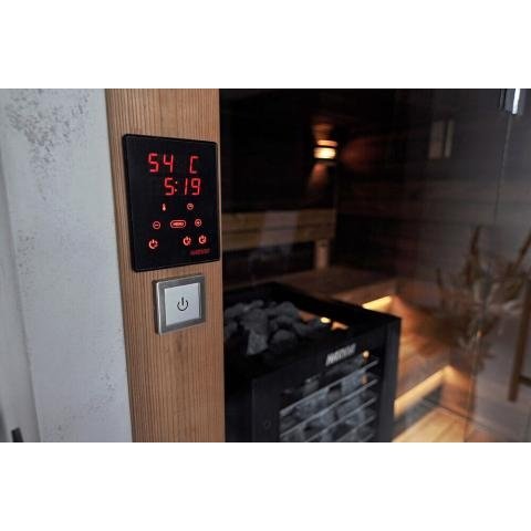 Harvia Xenio CX30C is a sauna heater control unit with a touch control panel. Xenio provides a modern and subtly stylish user interface for controlling the heart of the sauna, the heater. The stylishly small yet clear touch control panel is easy to install where you want it: in the sauna, the shower room, the dressing room, or even the living room. The control panel enables you to see with just one look when your sauna is at the right temperature for you.