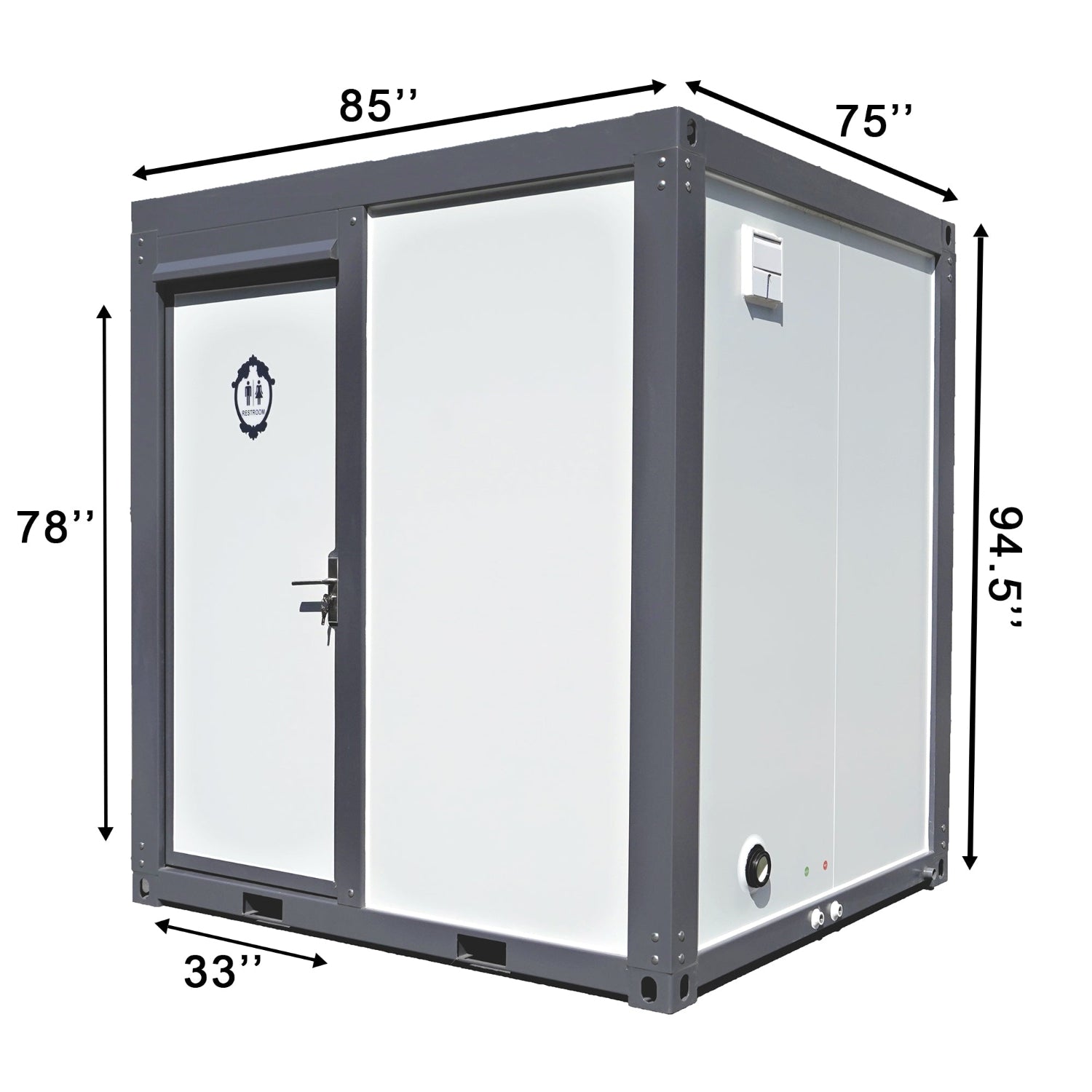 Our Portable Restrooms need to be supplied with city water or well pump water, and all portable toilet “sewage” needs to be connected to the city sewer system or a simple septic system.