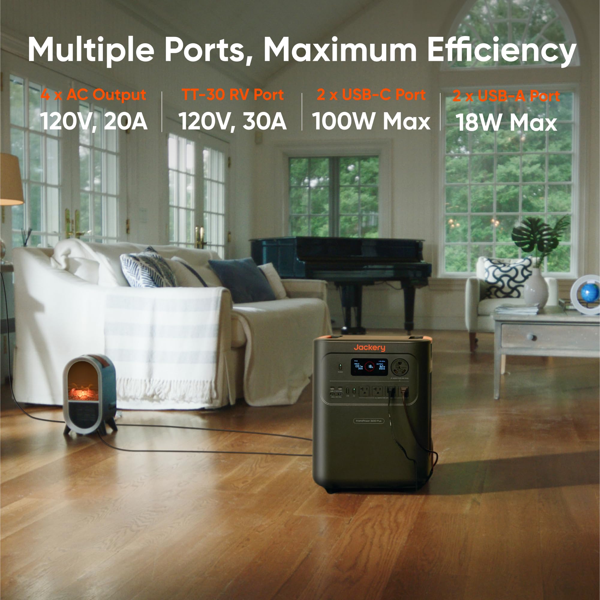 - Plug-and-Play: With its easy plug-and-play design, the Jackery HomePower 3600 Plus, paired with MTS, powers your home effortlessly—no complex installation required. Whether at work, in the kitchen, or with family, simply plug in, press “Power-On” and keep life running smoothly through any outage.