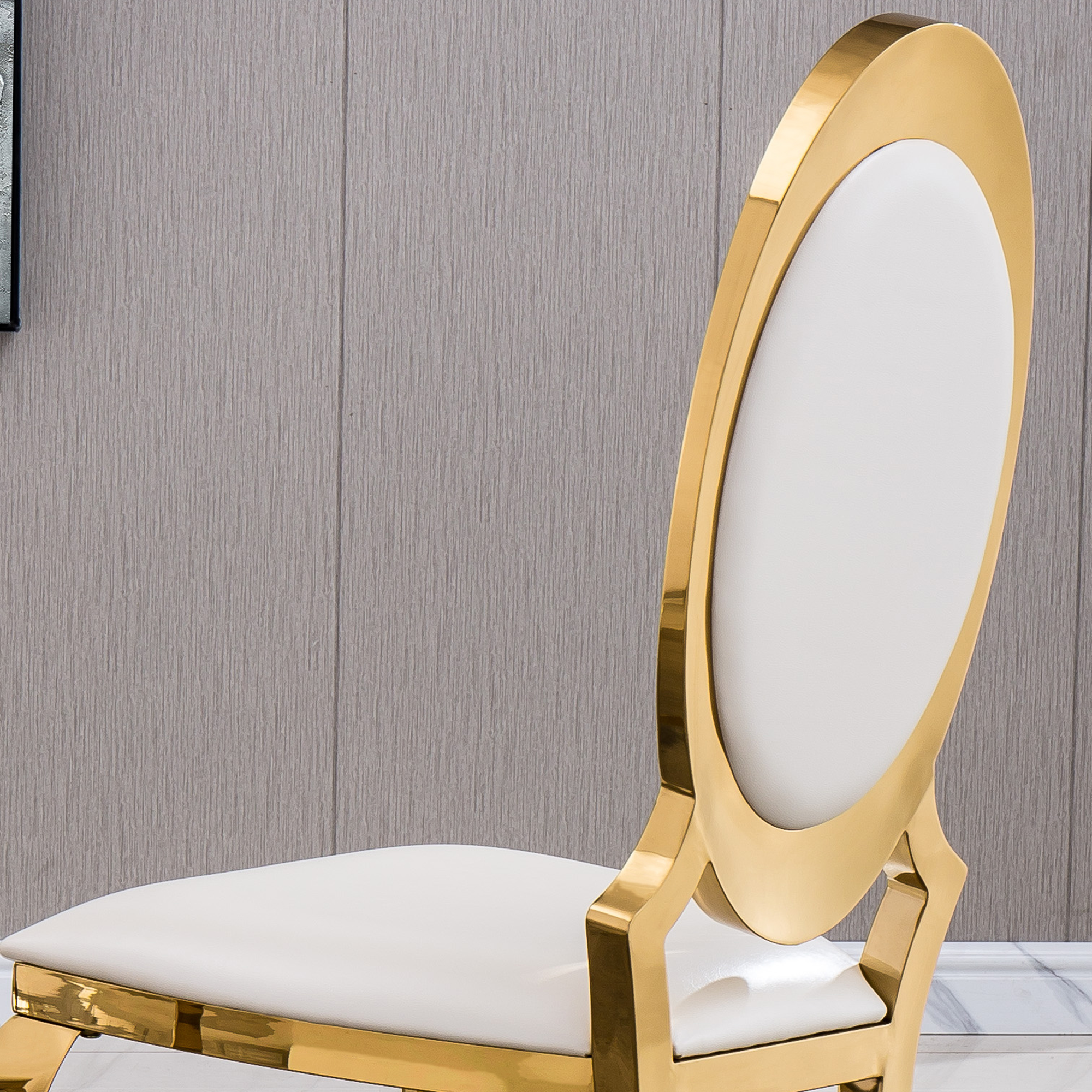 Be the first to review “Leatherette Dining Chair with Oval Backrest Set of 2, Stainless Steel Legs. Size: 22″Lx26″Dx44″H” Cancel reply