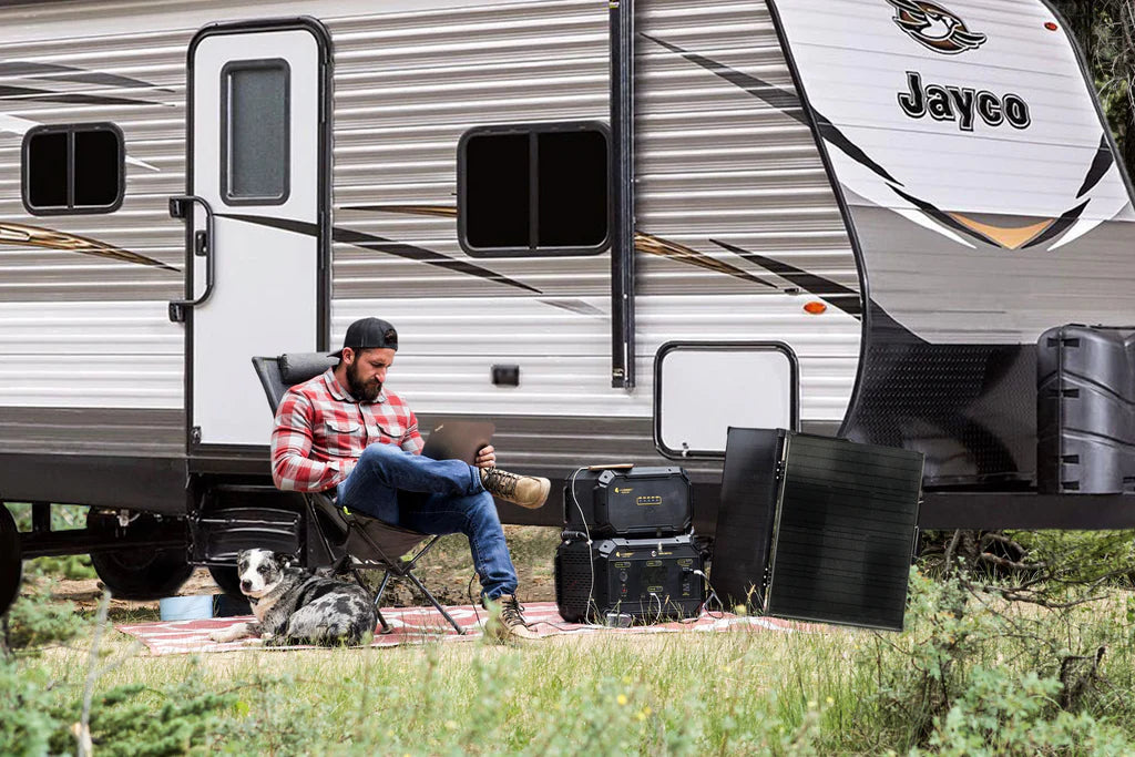 The Safari ME is a great energy storage unit for solar power from solar panels. It can store 922Wh (watt hrs) of energy.
