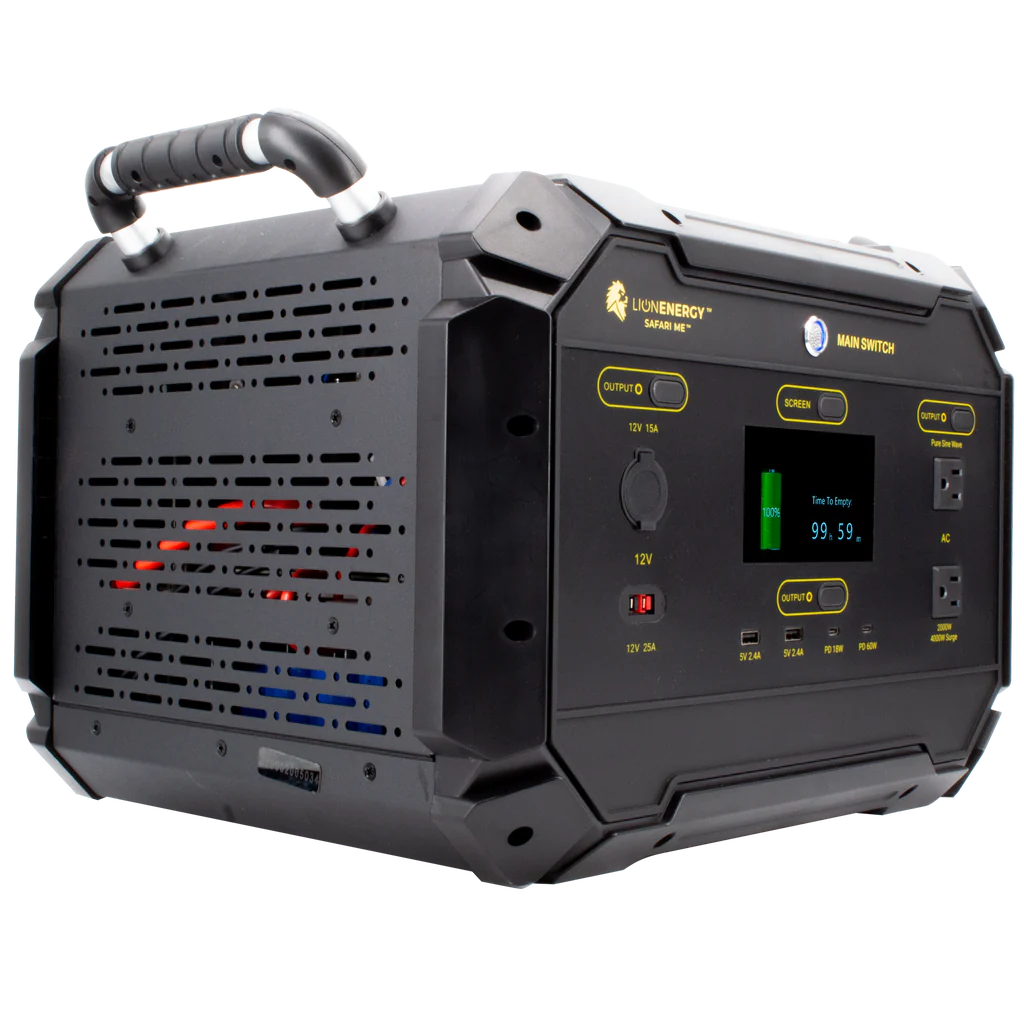 The Safari ME is a powerful lithium solar generator that powers virtually anything you can plug into a standard wall outlet (15A)
