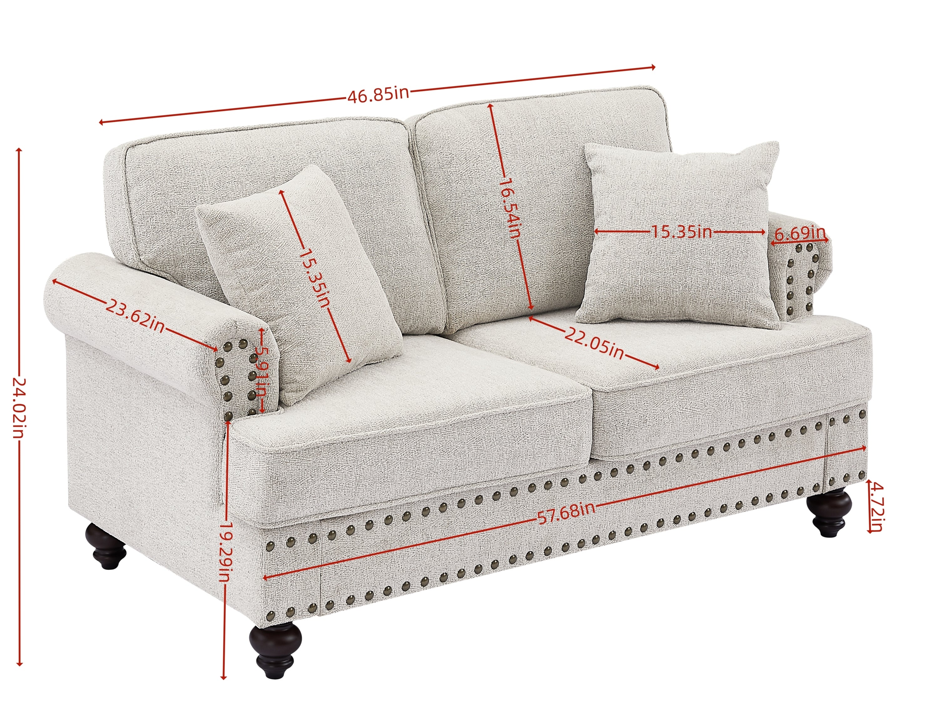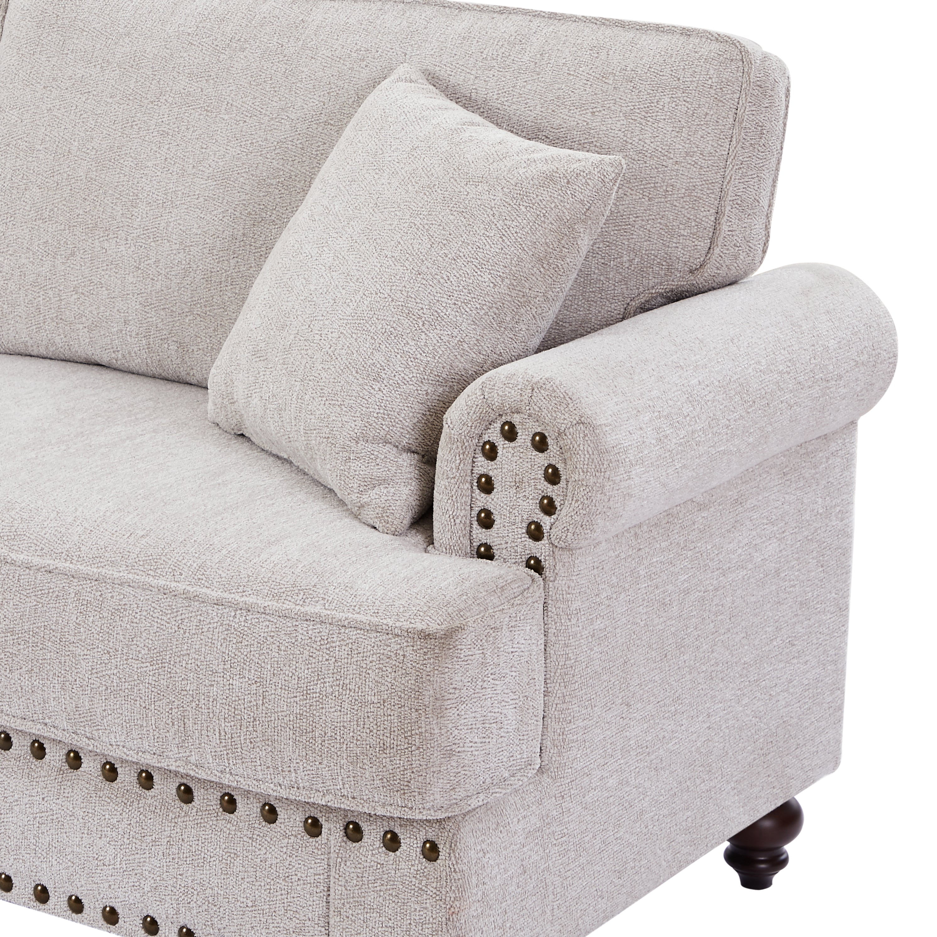 Chenille modern Upholstered Sofas with Nails and Armrests (White)