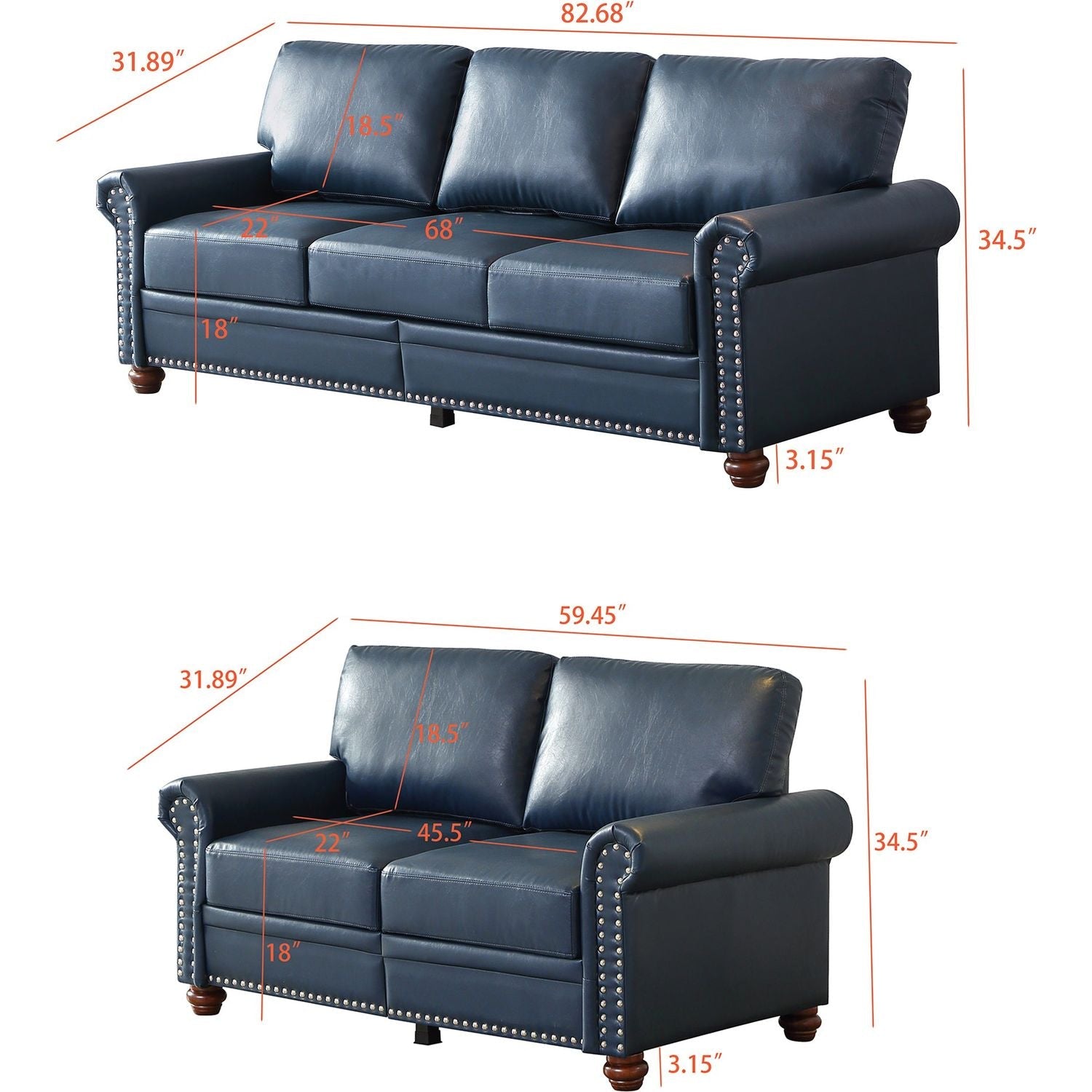Sofa:82.68″L x 31.89″W x 34.5″H |