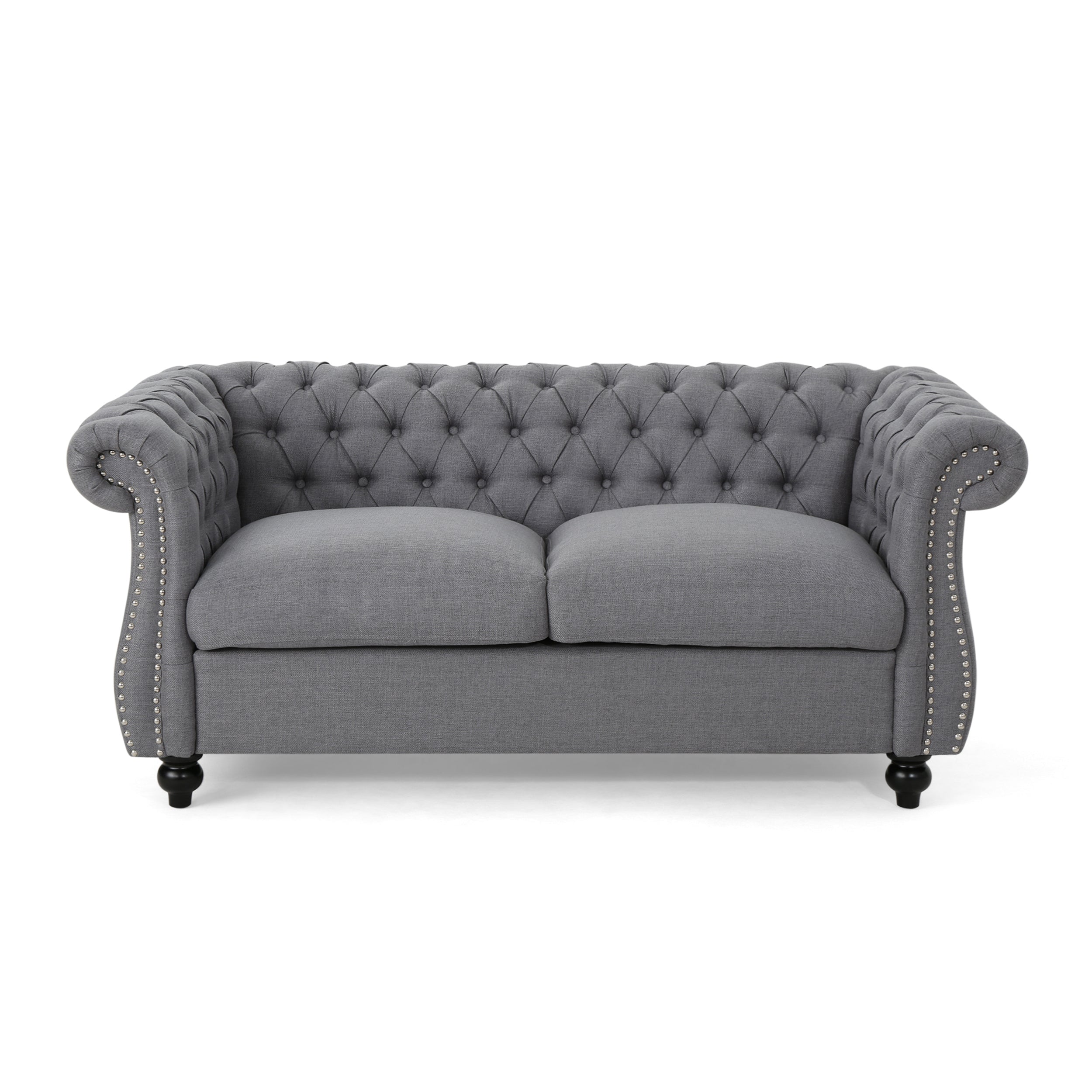 - CHESTERFIELD STYLE: Designed with the traditional Chesterfield loveseat in mind, this piece hits all the key elements with deep button tufting, nailhead accents, and rolled armrests.