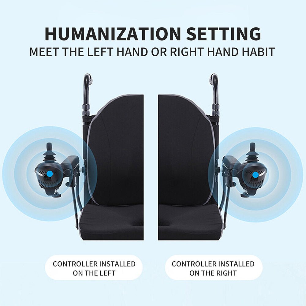 • The lightweight folding wheelchair features an universal 360 degress joystick controller that is extremely easy to control and use.