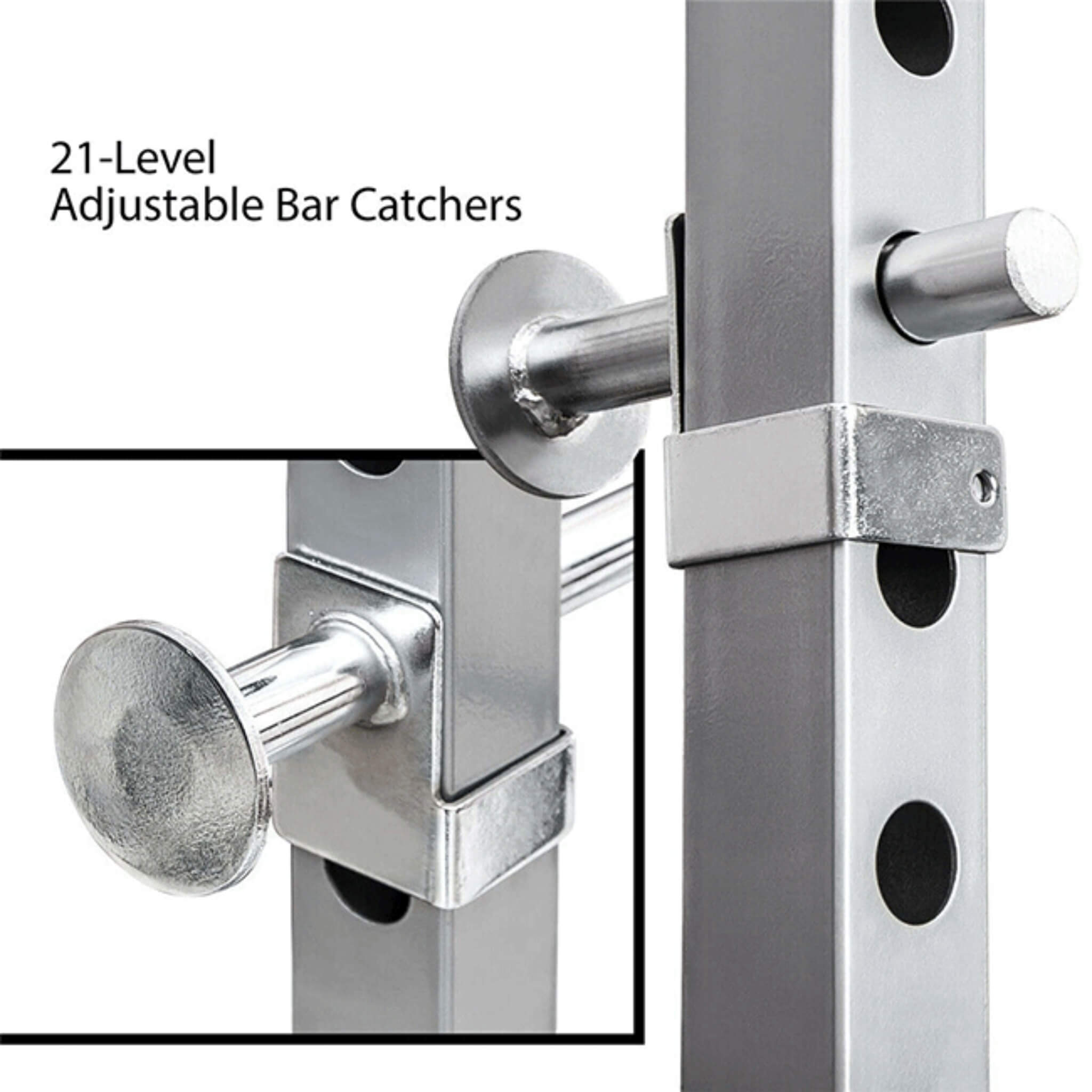 • Not only does the squat rack hold up the bar, but it also gives you added support when doing deep squats. The squat stand is especially useful when you don’t have a spotter to help you with your workout.