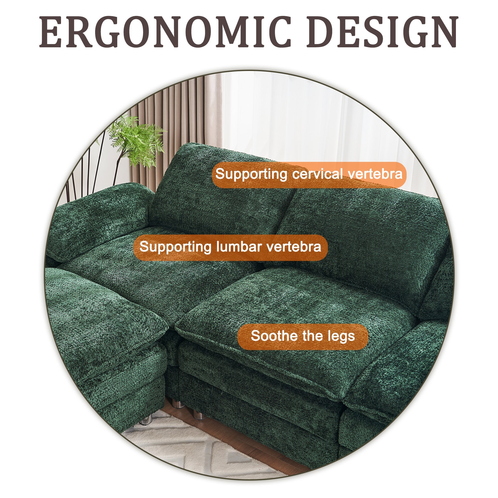 Modern Deep 3-Seat Sofa Couch with Ottoman, Polyester Sofa Sleeper Comfy Upholstered Furniture for Living Room, Apartment, Studio, Office, Green