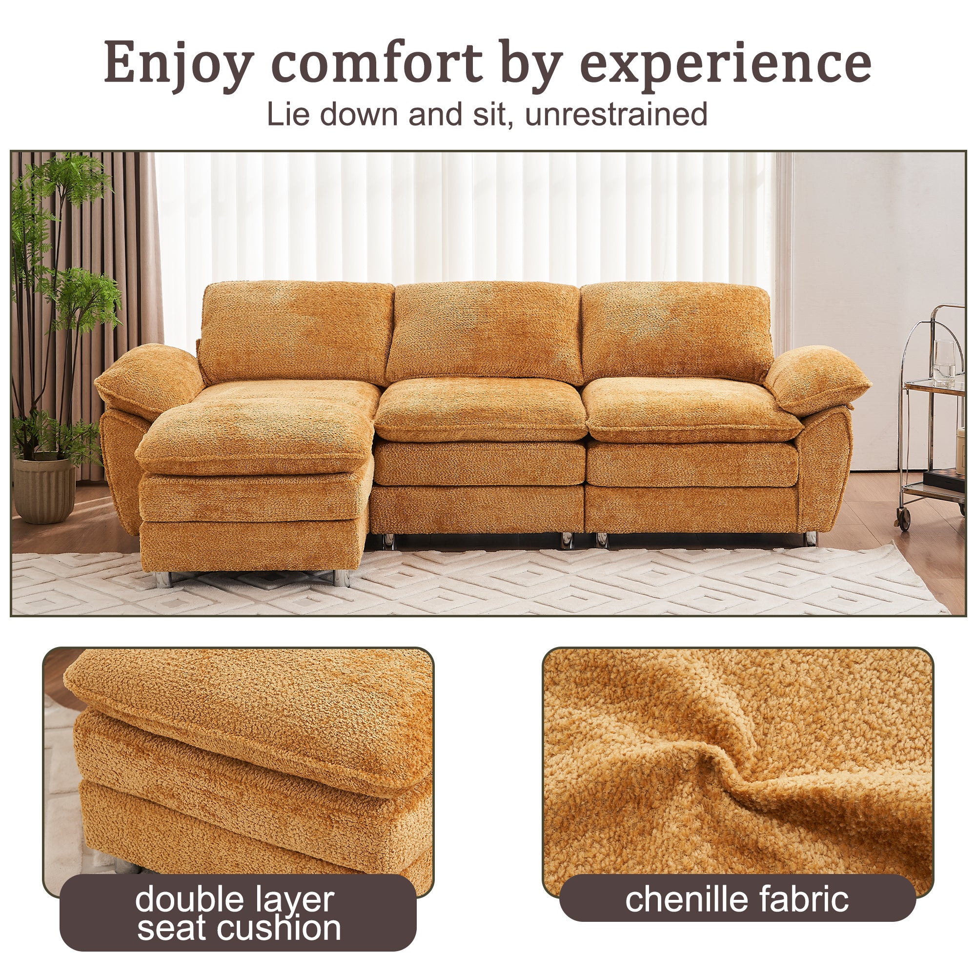 - Stunning Comfortable Couch – This oversized couch features 10.6″ upholstered 2-layer seat,which provides a cloudlike seating experience.