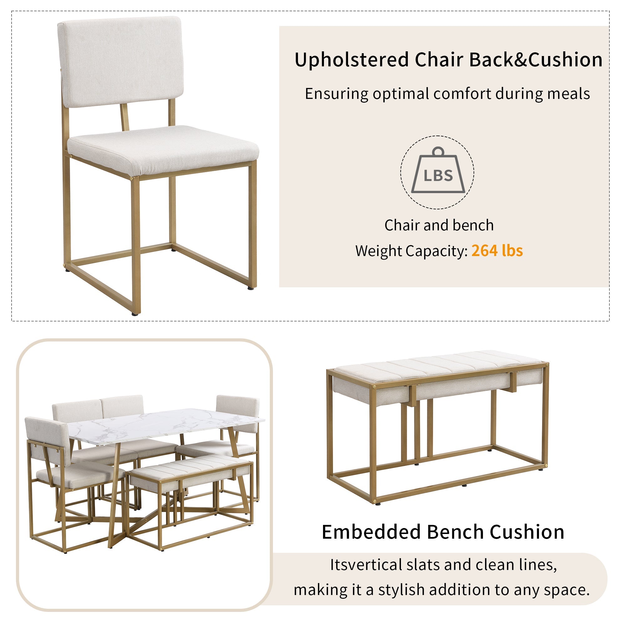 | Color | Table:Faux Marble White Chair/Bench:Golden Frame +Beige Cushion |