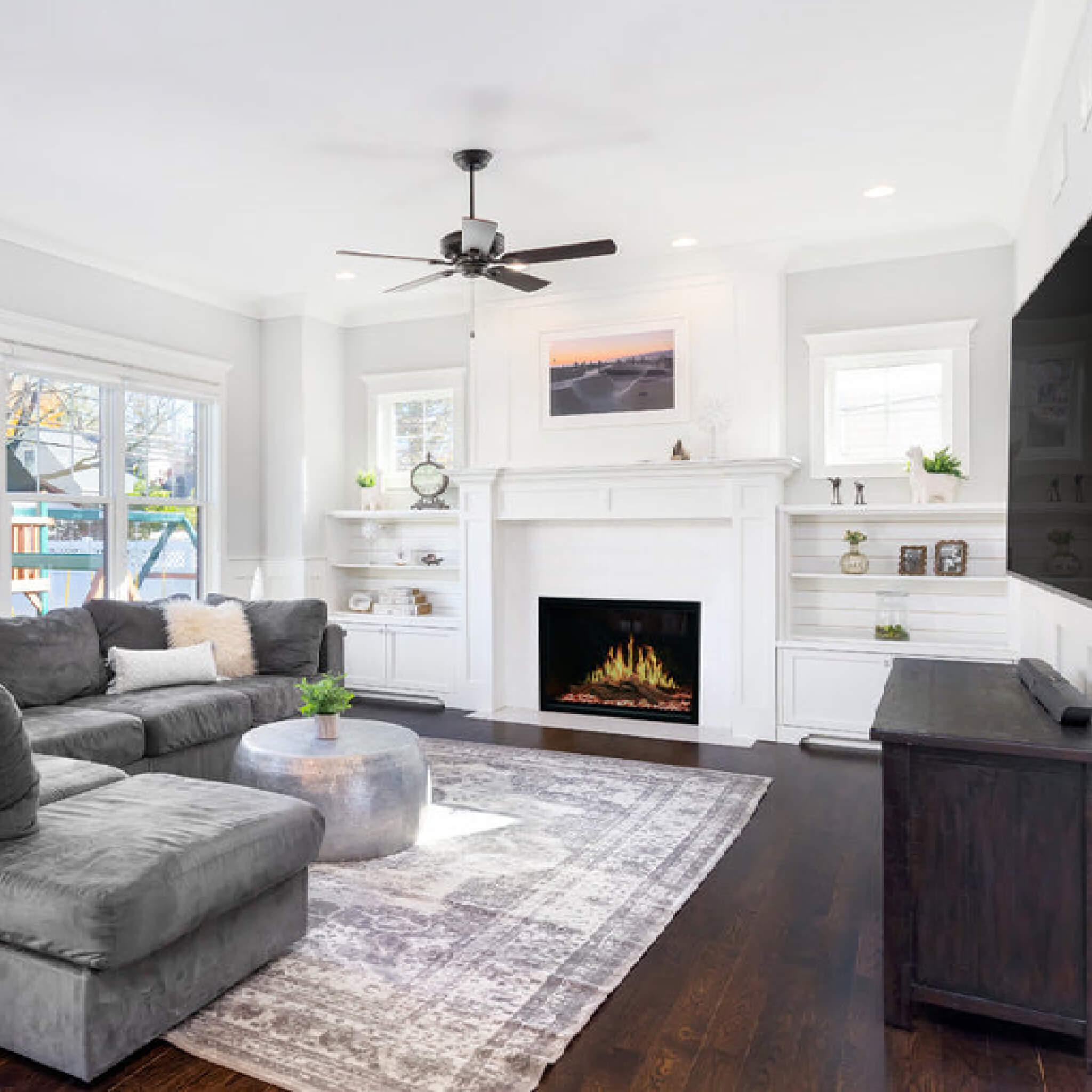 • The Modern Flames Orion uses cutting-edge Heliovision technology to create the most life-like flames in an electric fireplace. Enjoy an authentic fireplace experience with vibrant flames that look stunning from any angle.