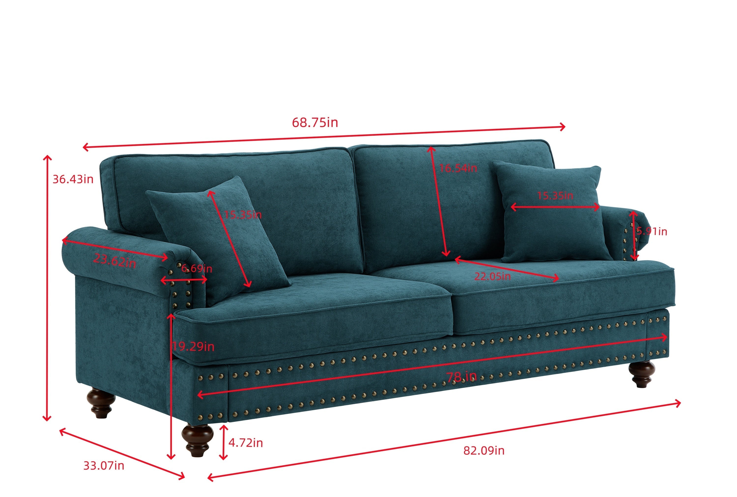 • 82″ Green Chenille Sofa Couch