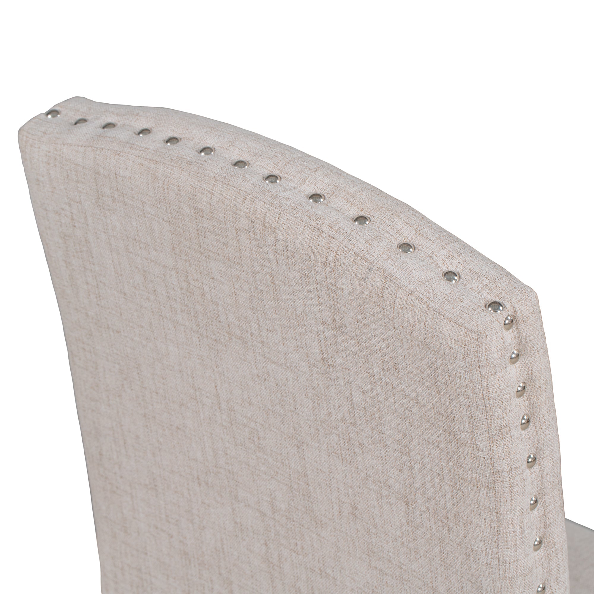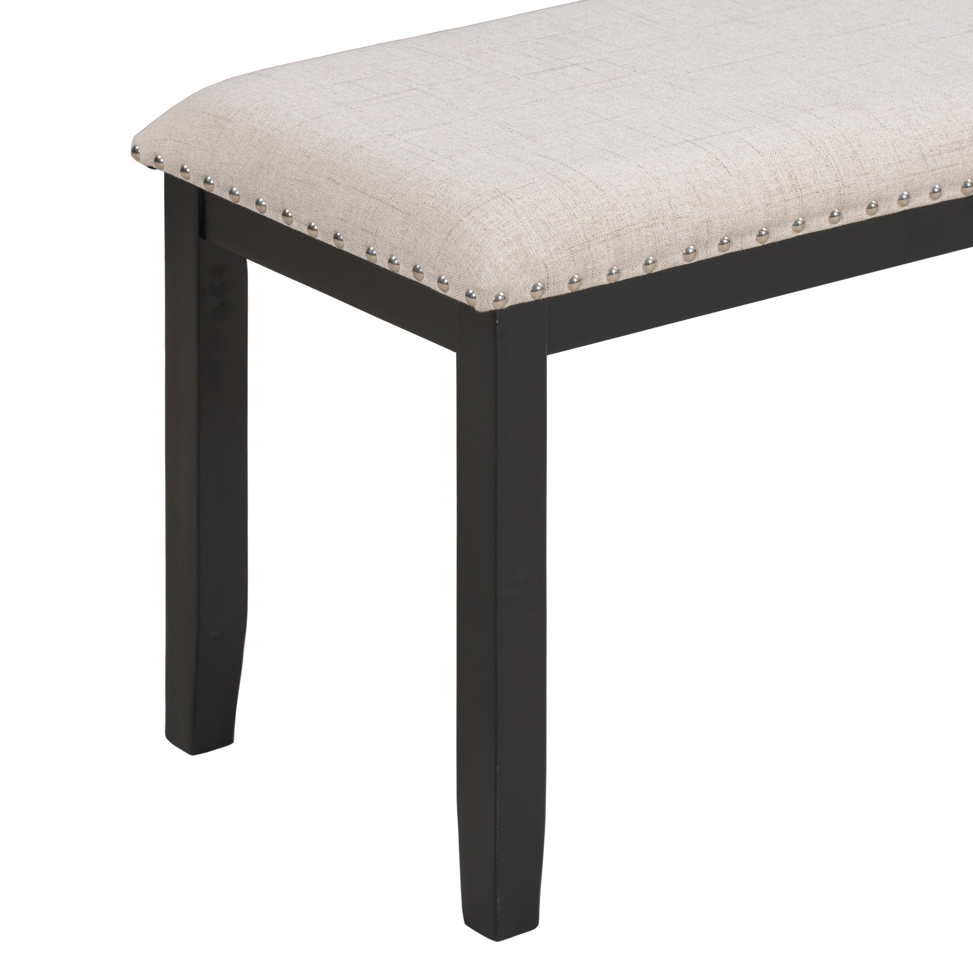 Many of the details show the craftsmanship. The four upholstered chairs and a soft covered bench are soft and comfortable, with beautiful rivet edges on the seat and back. The thickness of cushion of chairs and bench is 2.4 inches to guarantee wonderful using experiences. Four high back upholstered chairs have curved chair back top styling to provide better back support.