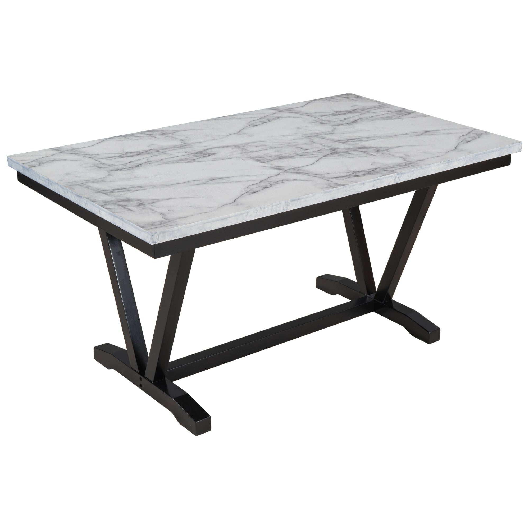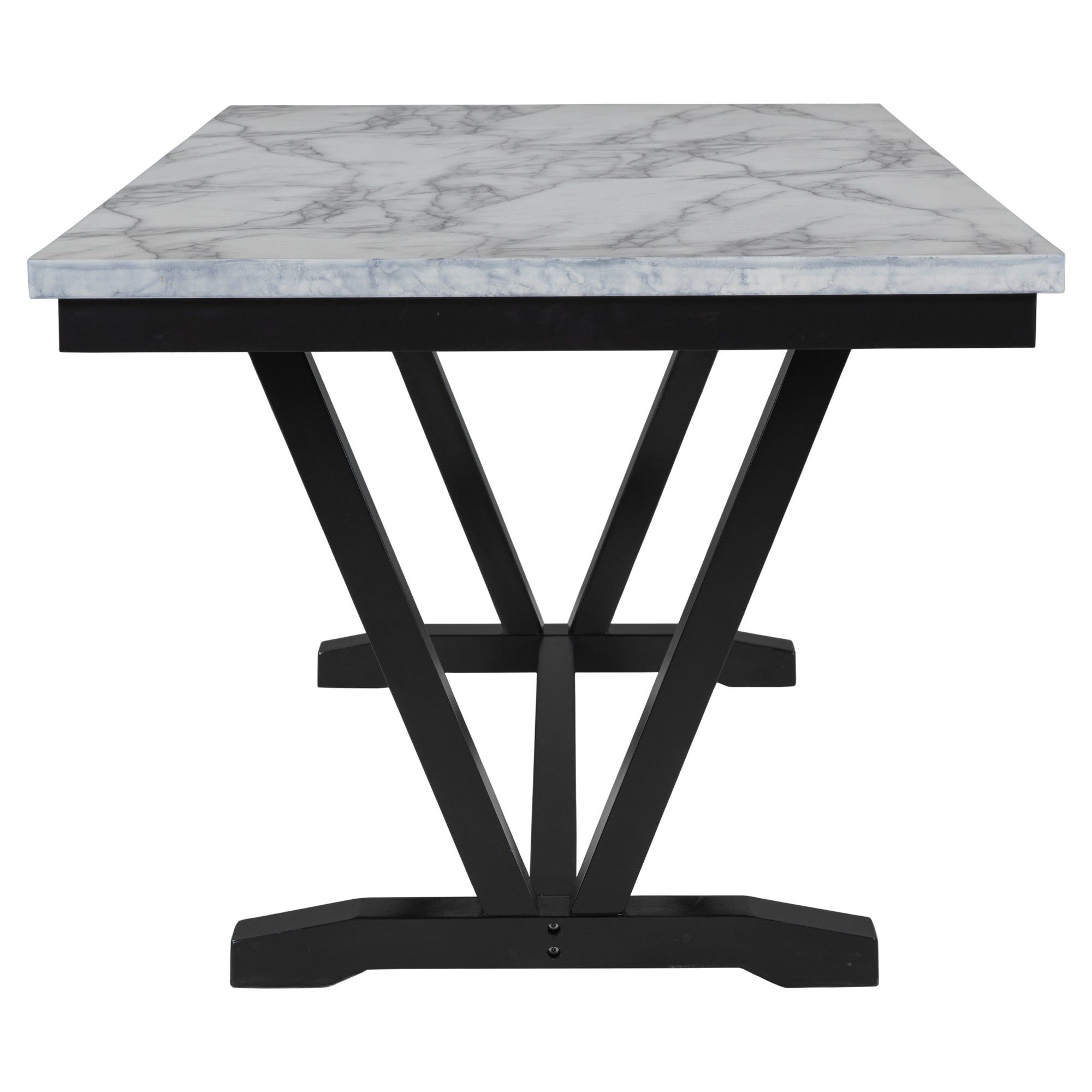 For stability in daily usage, this table topped with marble veneers adopts the design of V-shaped table legs and H-shaped leg base. The table legs are manufactured with MDF board, and the part of V-shaped is made of solid wood plywood. The surface of these legs and the frame are painted into black to enhance the solid, traditional feel.
