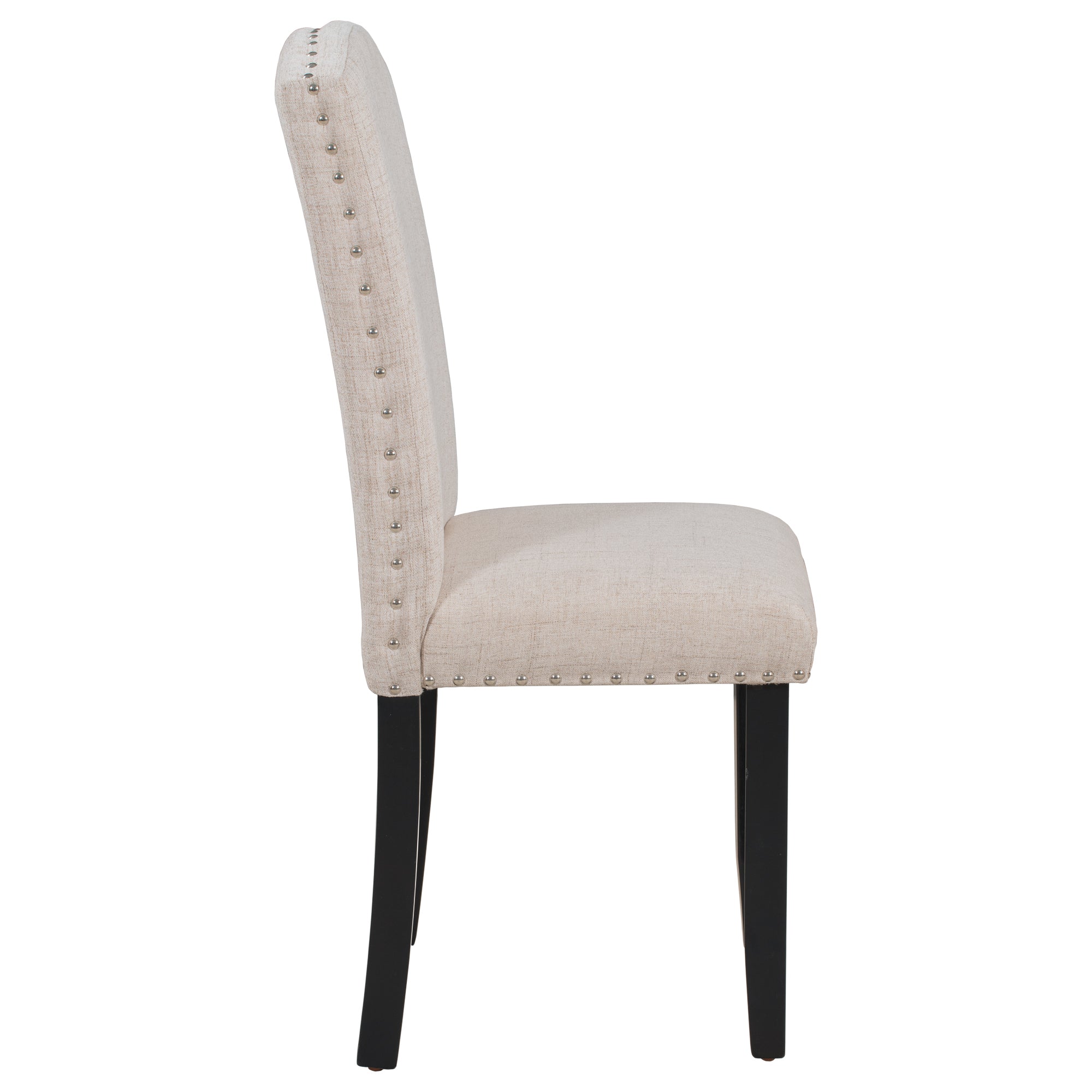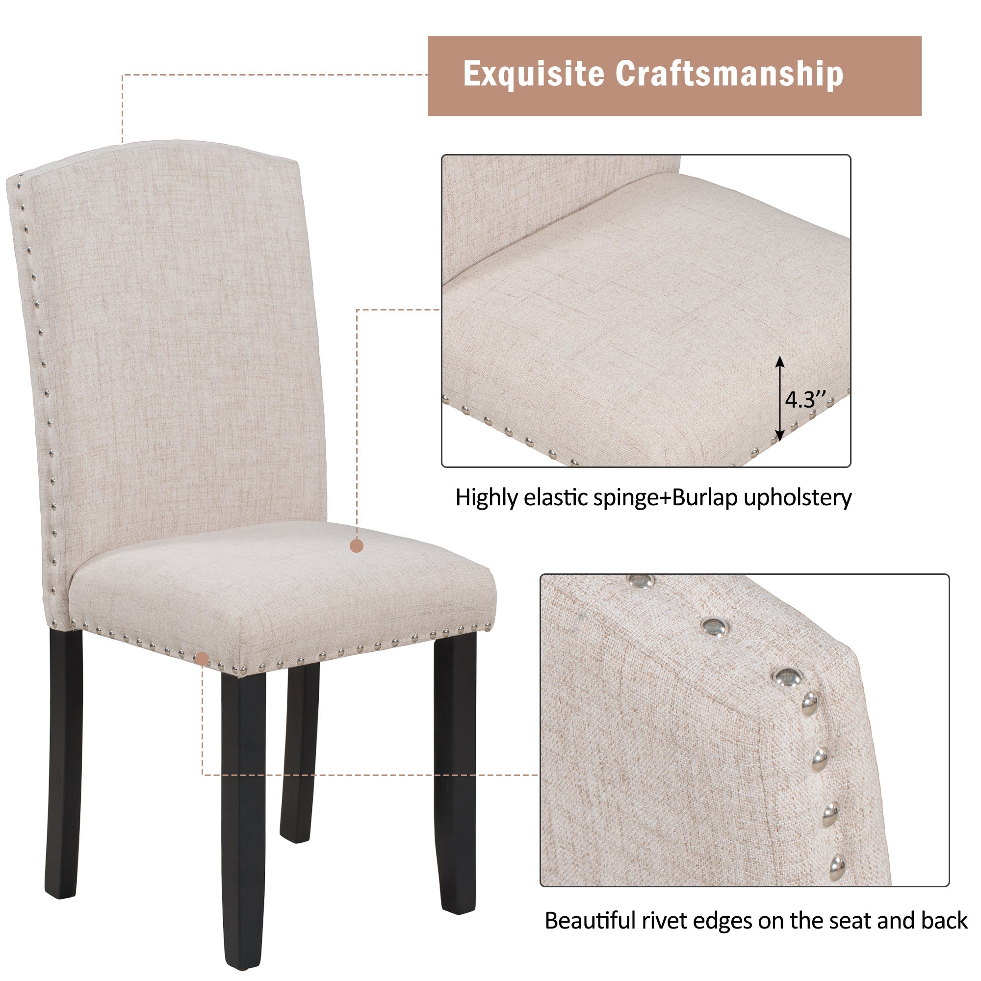 3.Four upholstered chairs with beautiful rivet edges on the seat and back have 2.4 inches thickness cushion to guarantee the wonderful using experiences.