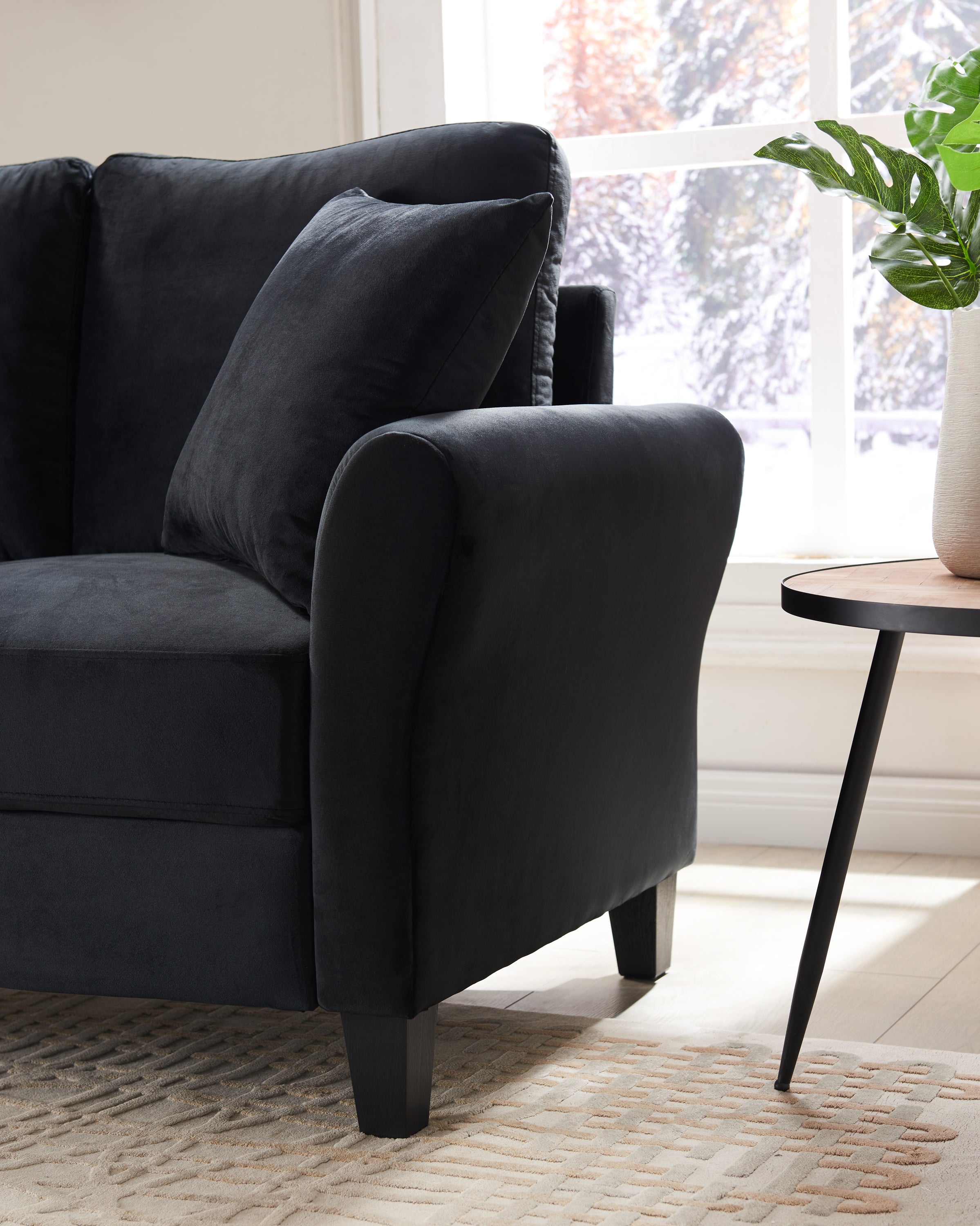 Built To Last – A naturally strong frame is wrapped in supportive foam cushioning and soft velvet fabric; seats a maximum weight capacity of 600 lbs; seat cushions are secured to the frame and are not detachable, while back cushions are detachable.