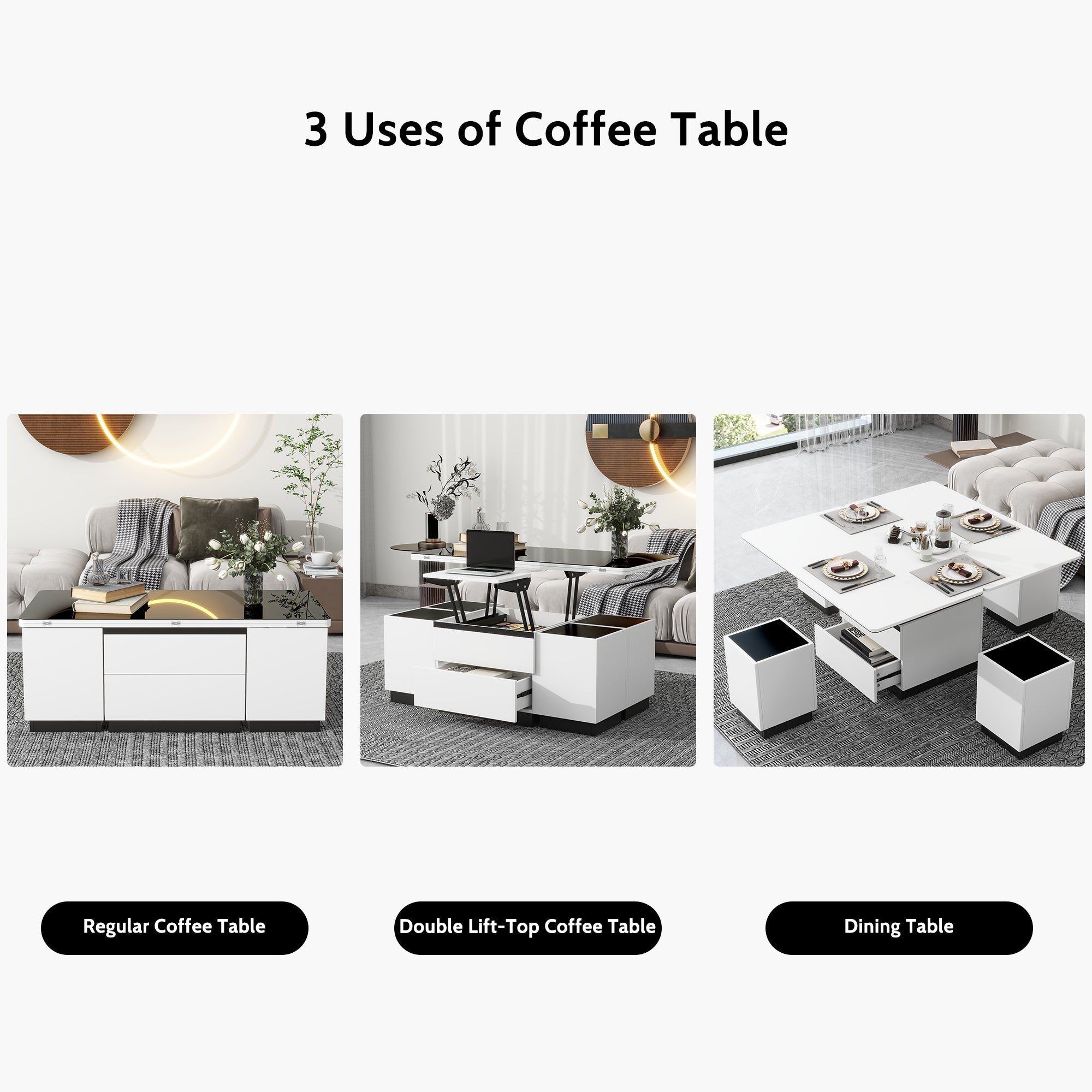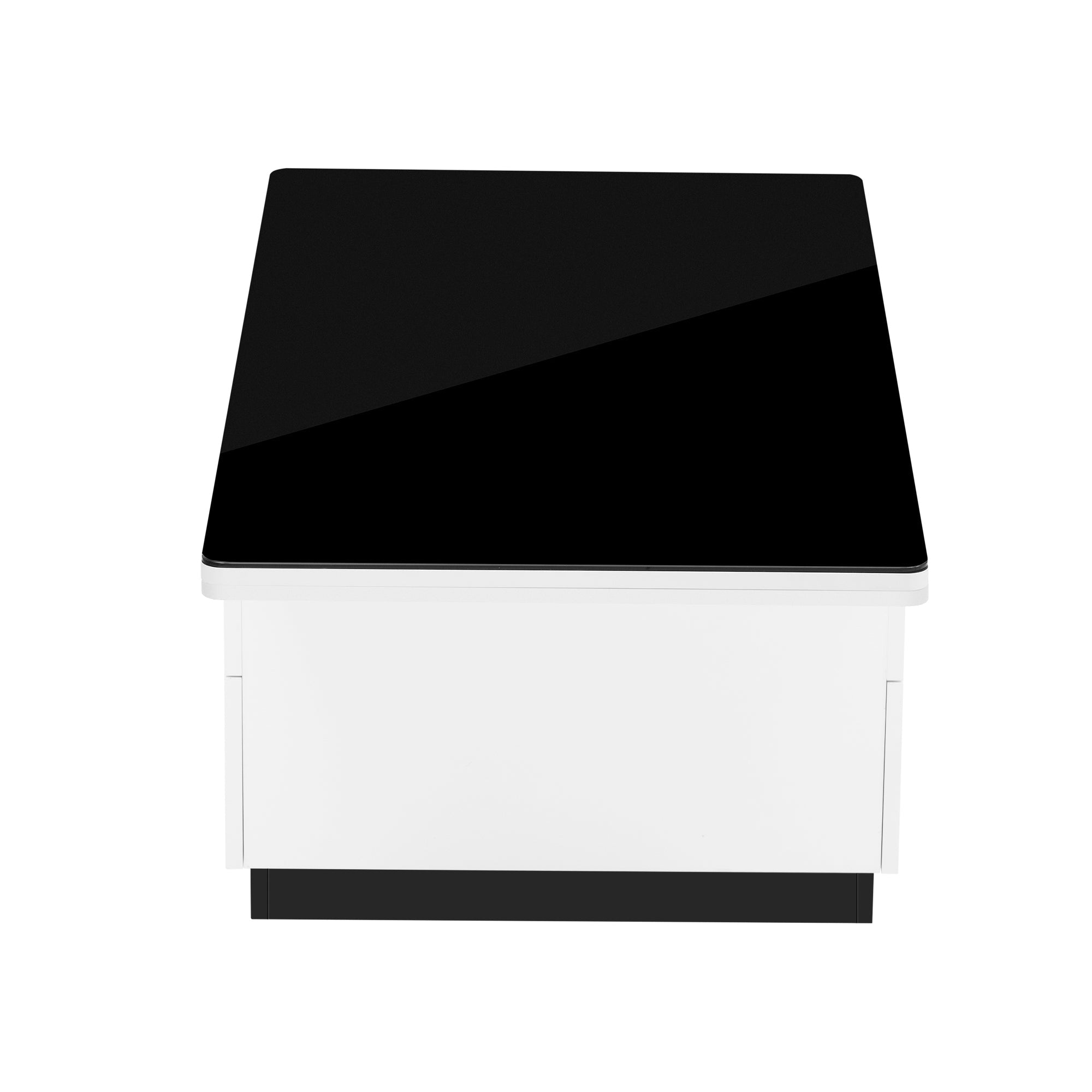 Modern White Lift Top Glass Coffee Table with Drawers & Storage Multifunction Table