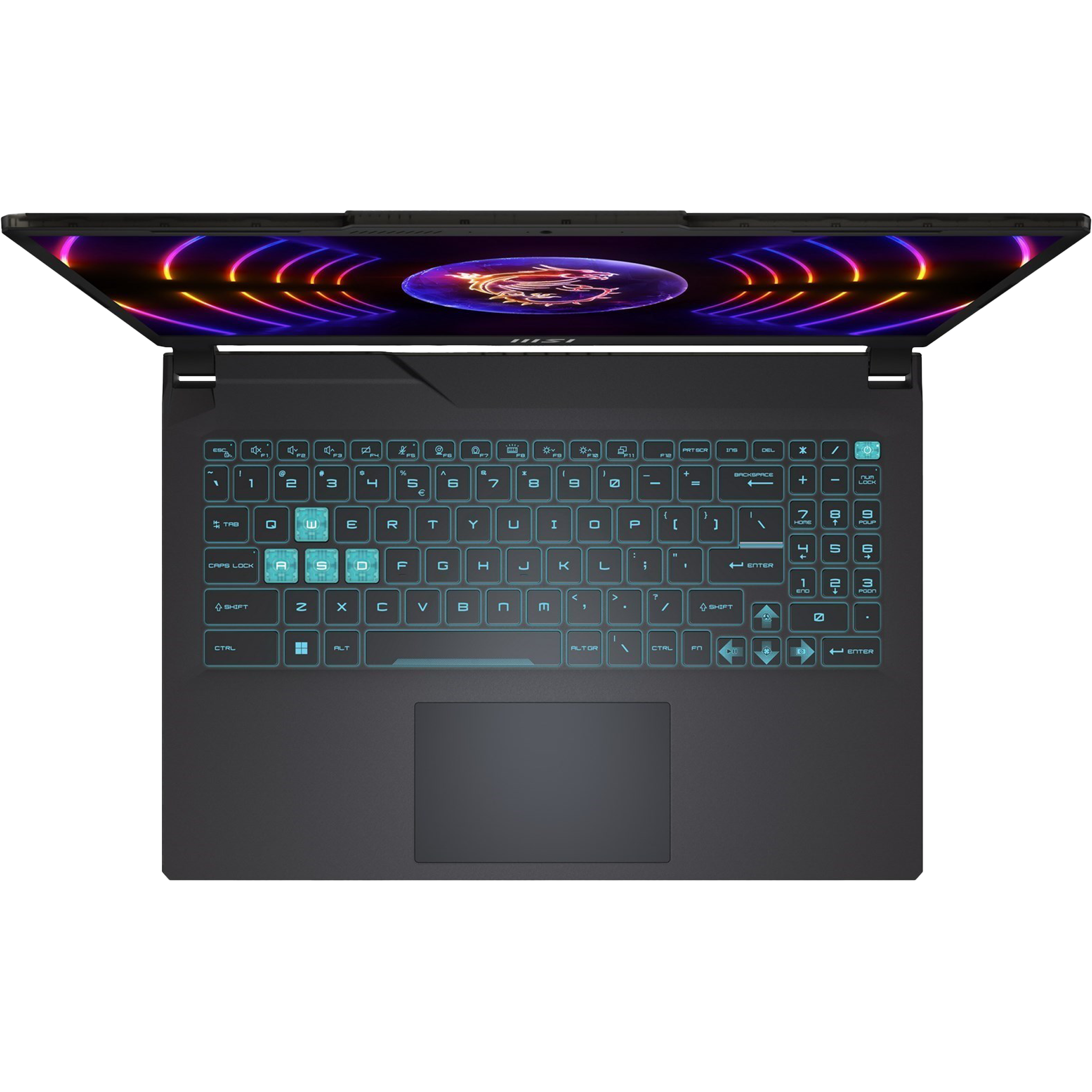Highlighted neon WASD keys for faster and accurate in-game movements, with Sci-Fi accent space key, arrow keys and power button for added cyberpunk-style touch.