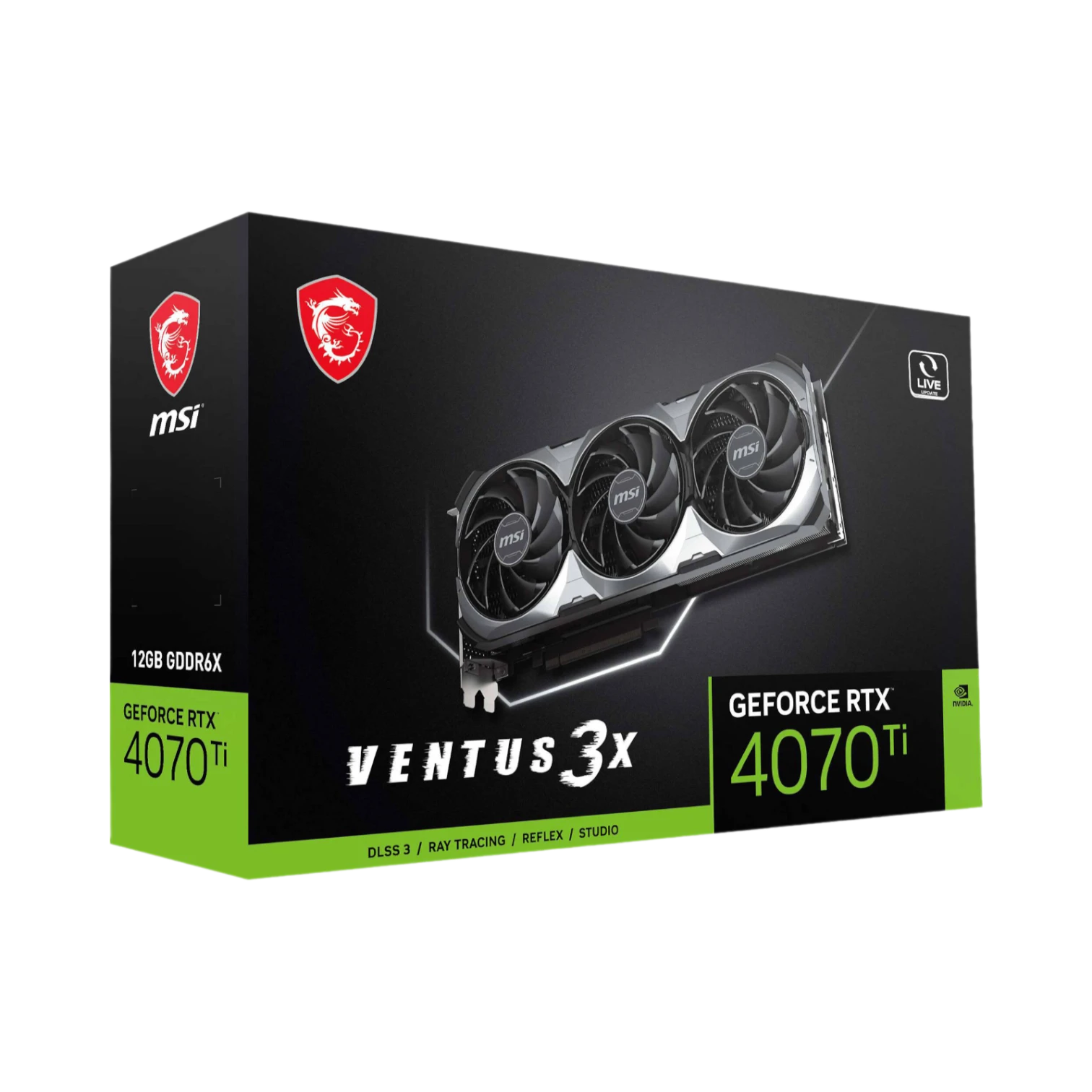 For builders and tweakers, MSI Center software offers real-time monitoring, fan curve adjustments, and one-click performance profiles. Whether you are editing 4K footage in DaVinci Resolve, sculpting models in Blender, live-streaming a tournament, or exploring open-world adventures at maximum settings, the RTX 4070 Ti VENTUS 3X 12G stands ready to handle the workload.